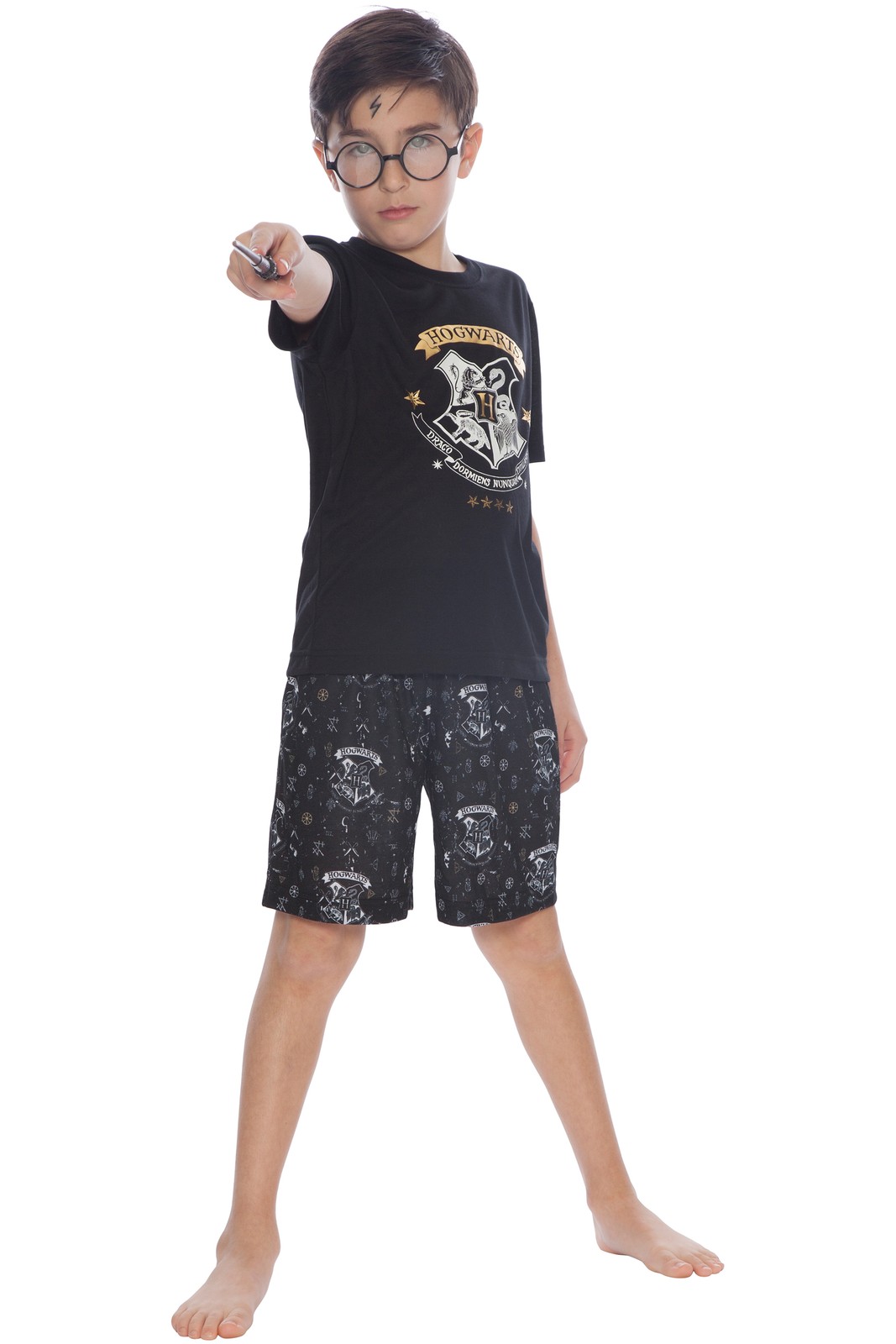 как выглядит Harry Potter Boys Little Hogwarts Wizard Crest Pajama Short Set, Black, 8 фото