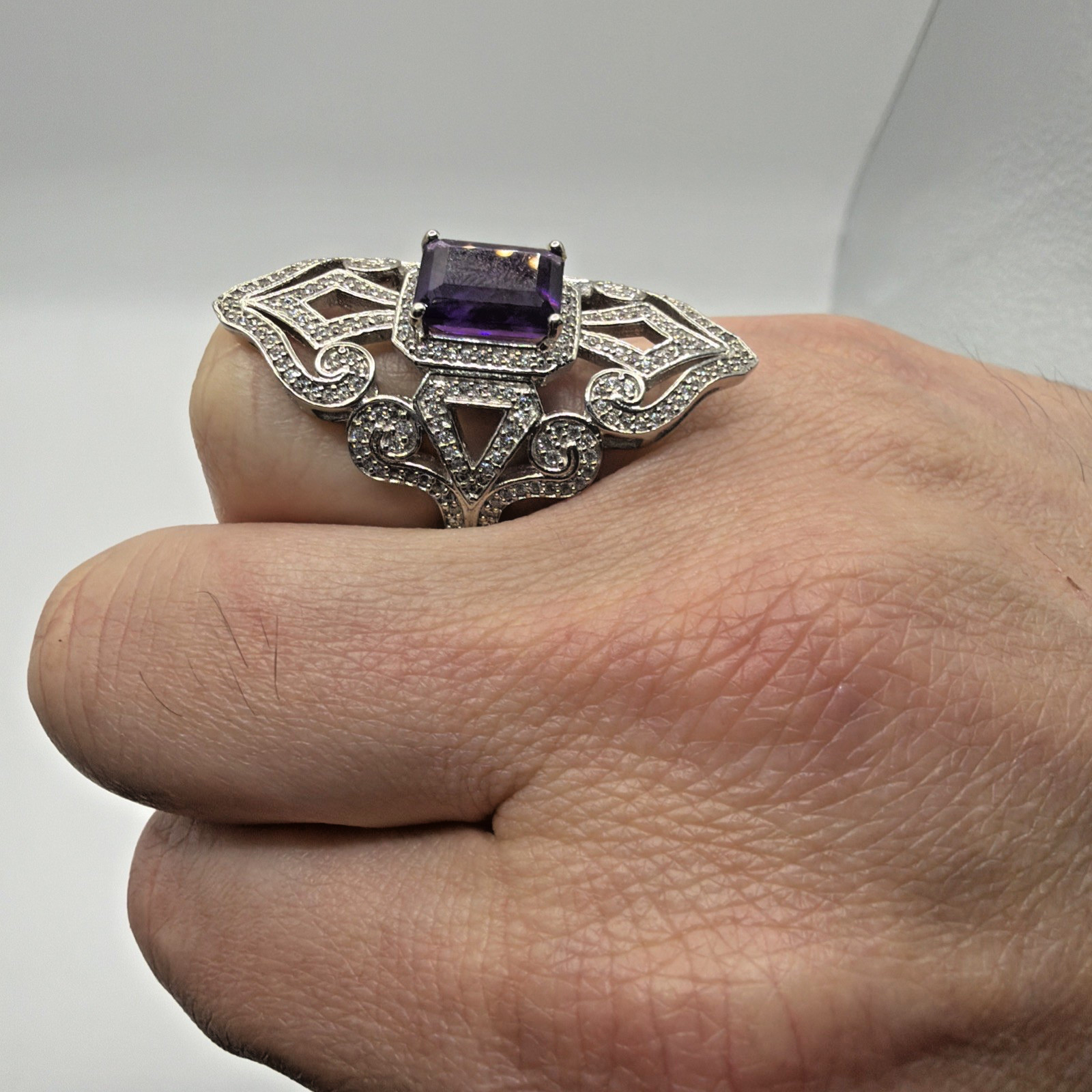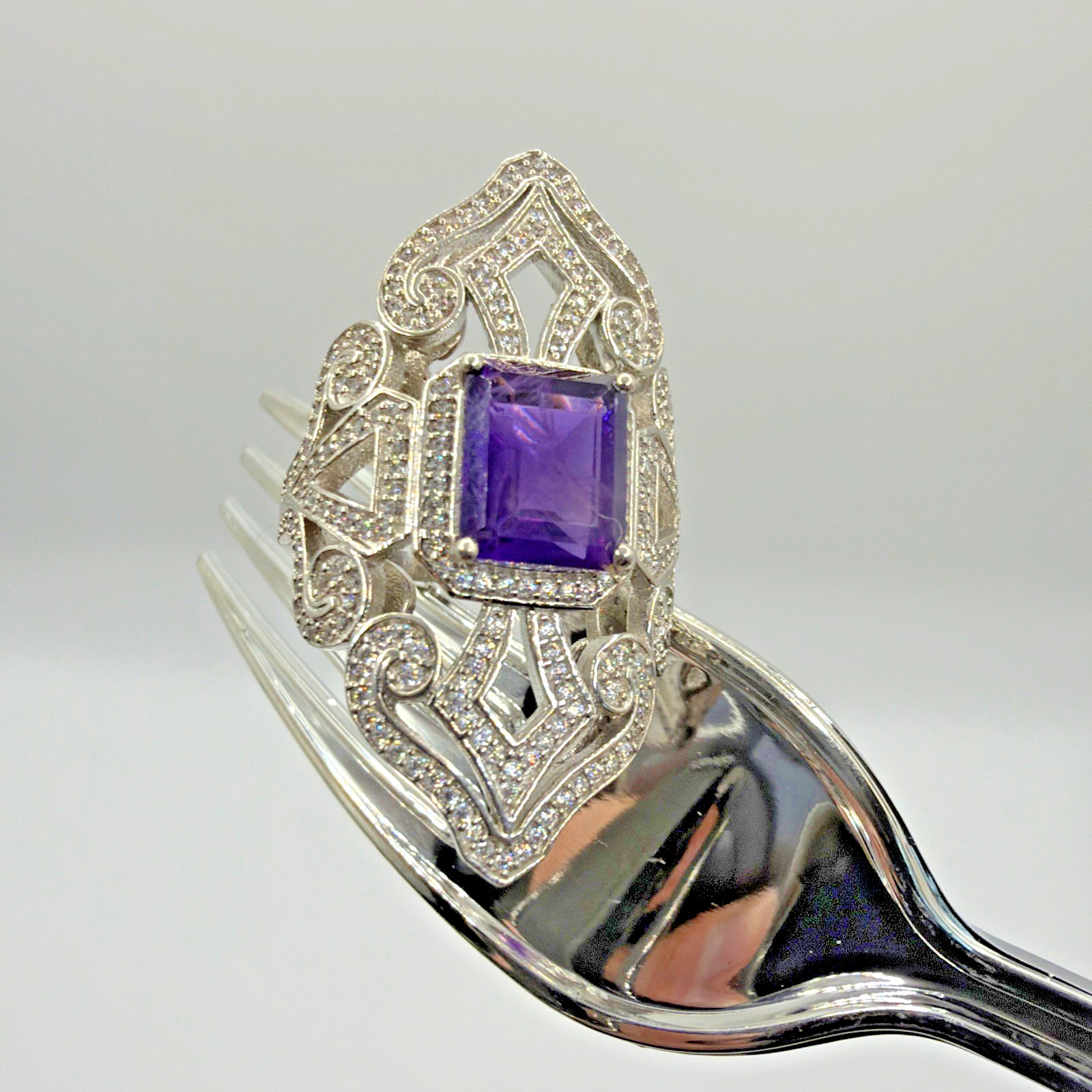 как выглядит Vintage Sterling Silver Ring Amethyst Rhinestone Size 8 фото