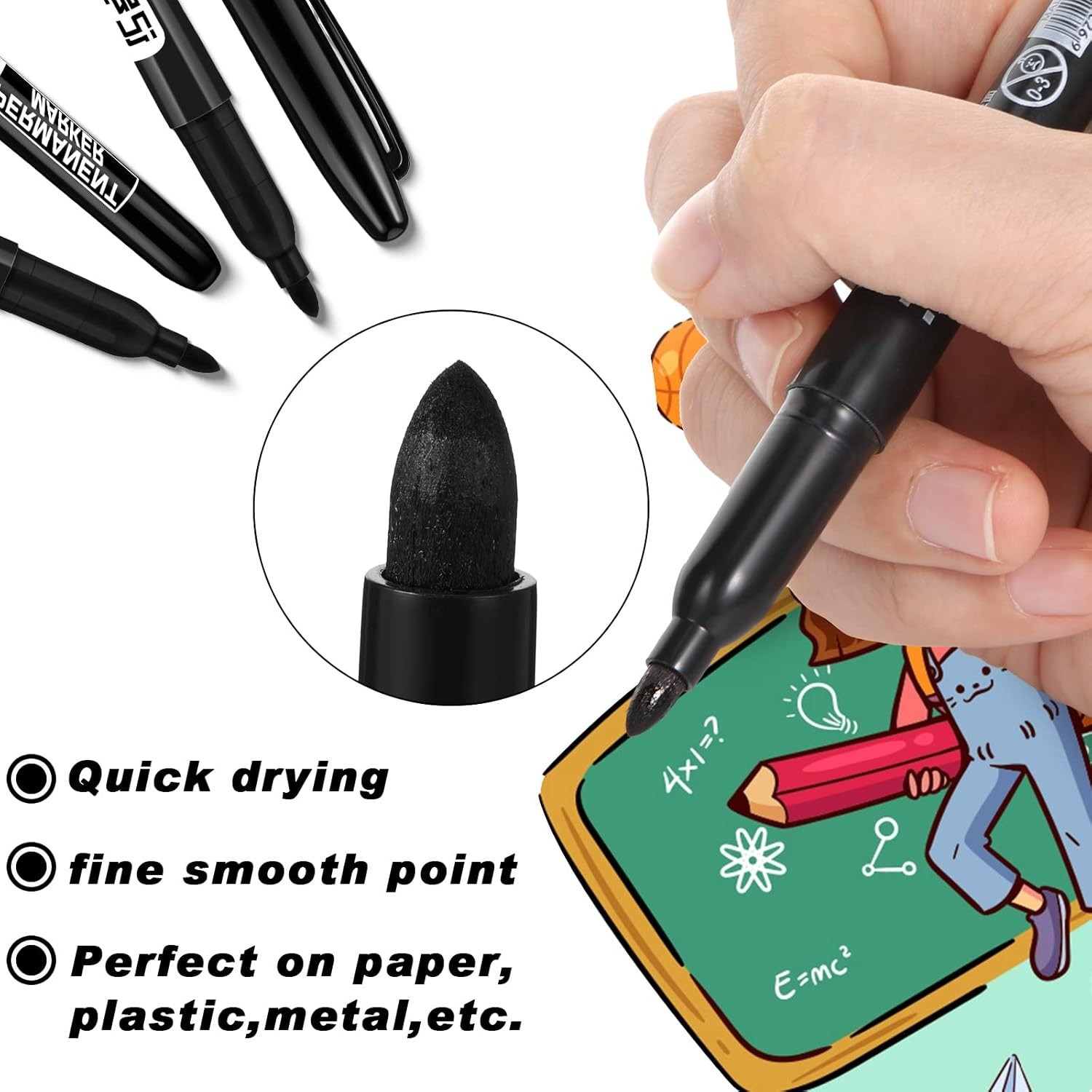 Thenshop 100 Pack Black Permanent Markers Fine Point Waterproof Multi-Surface
