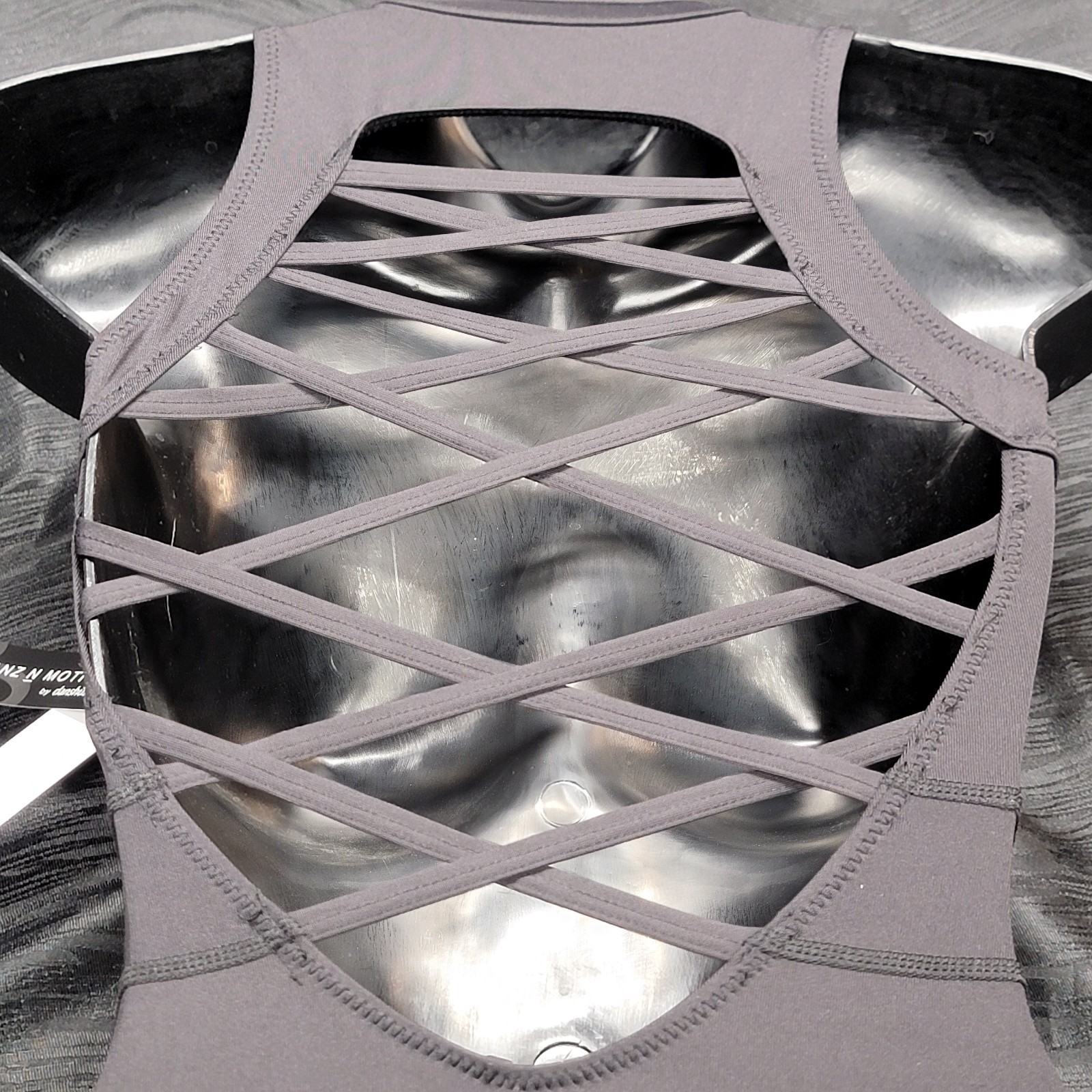 как выглядит Danz N Motion Zip-front Leotard Black High Neckline Criss-cross Open Back SZ. SA фото