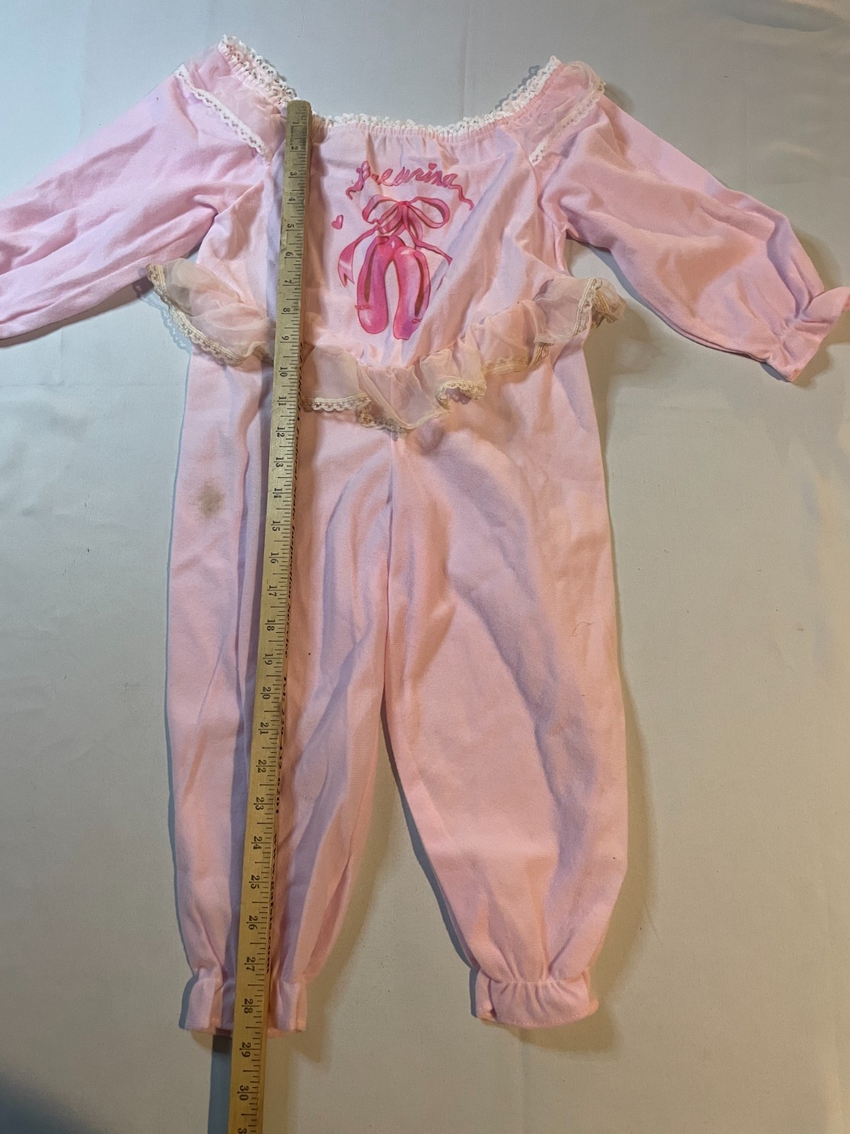 Vintage Candlestick Ballerina One Piece Pajama Girls Size 4T Pink Ruffle Trim