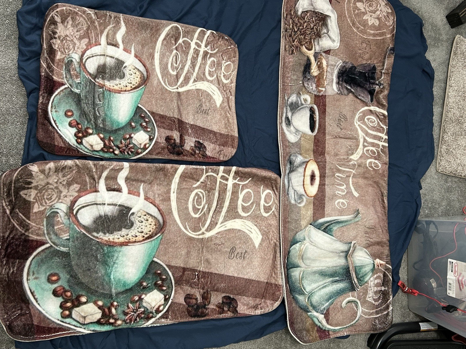 Coffee Theme Kitchen Rug Set of 3 with Grip Non Slip Backing