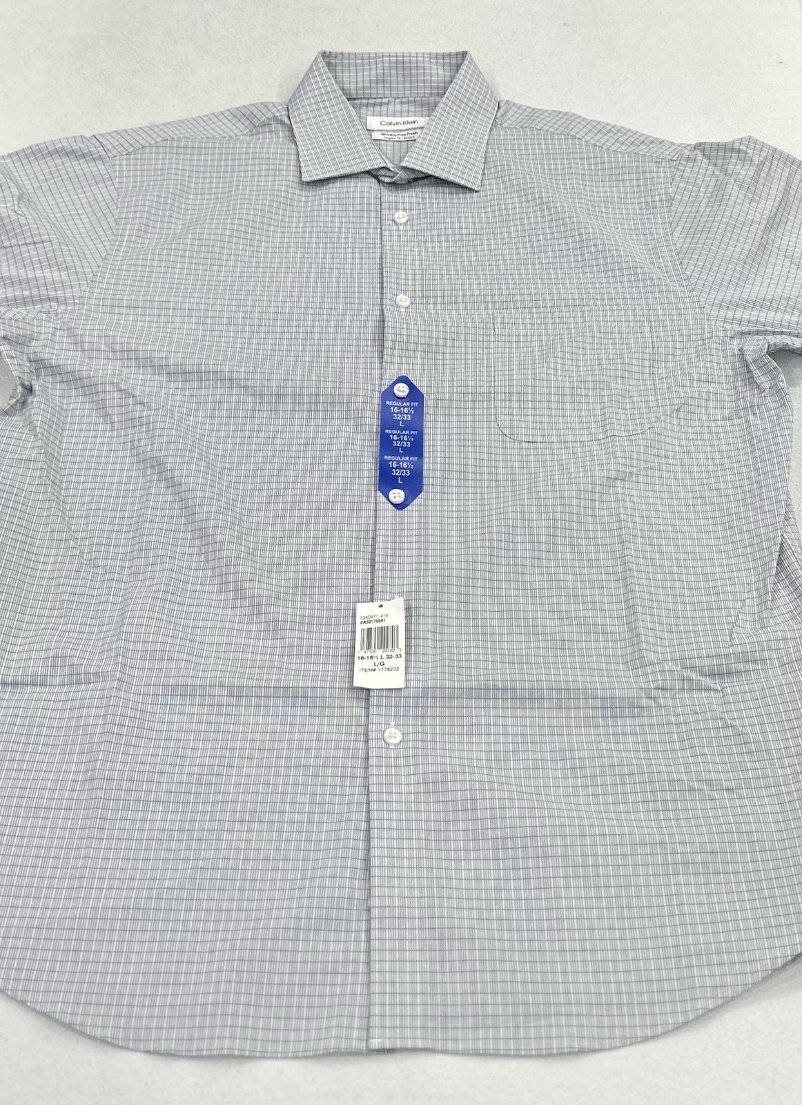 Calvin Klein Men's Wrinkle Free Dress Shirt, Blue, Size L 16-16.5, 32/33