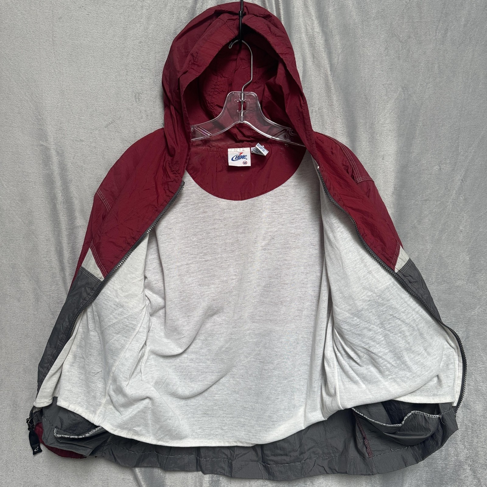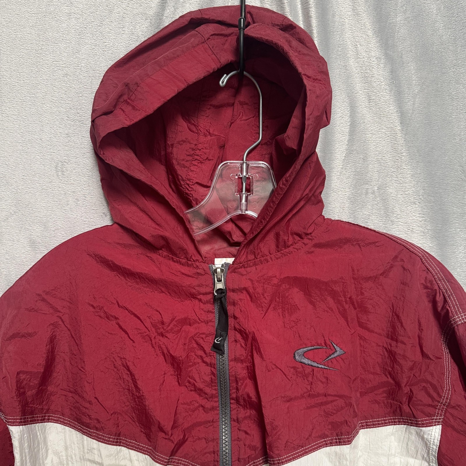 BIKE Jacket Youth M 10/12 Red Gray White Hooded Windbreaker Nylon Zip 90s VTG