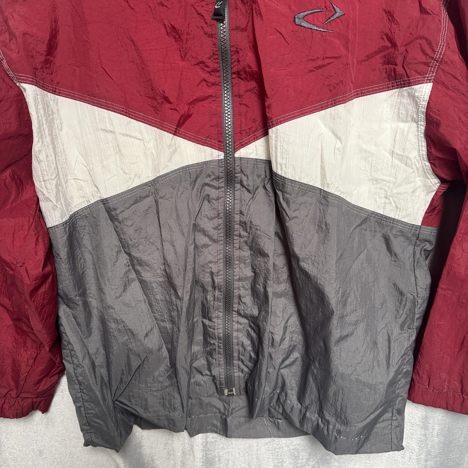 как выглядит BIKE Jacket Youth M 10/12 Red Gray White Hooded Windbreaker Nylon Zip 90s VTG фото