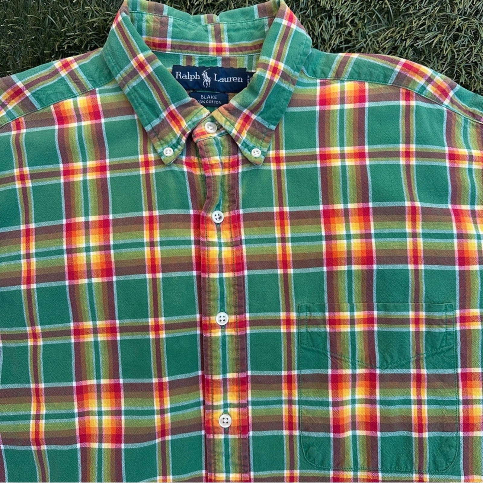 Vintage Ralph Lauren Tartan Plaid Button Down Long Sleeve Oxford Shirt RARE L