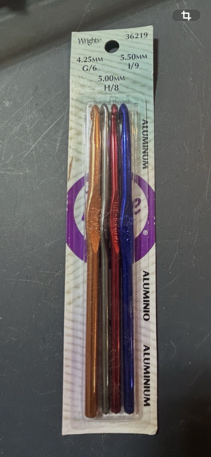 как выглядит Wrights Aluminum Crochet Hooks Set Of 4- Sizes 4.25, 5.50, 5.00 G6-H8-I9-NEW фото
