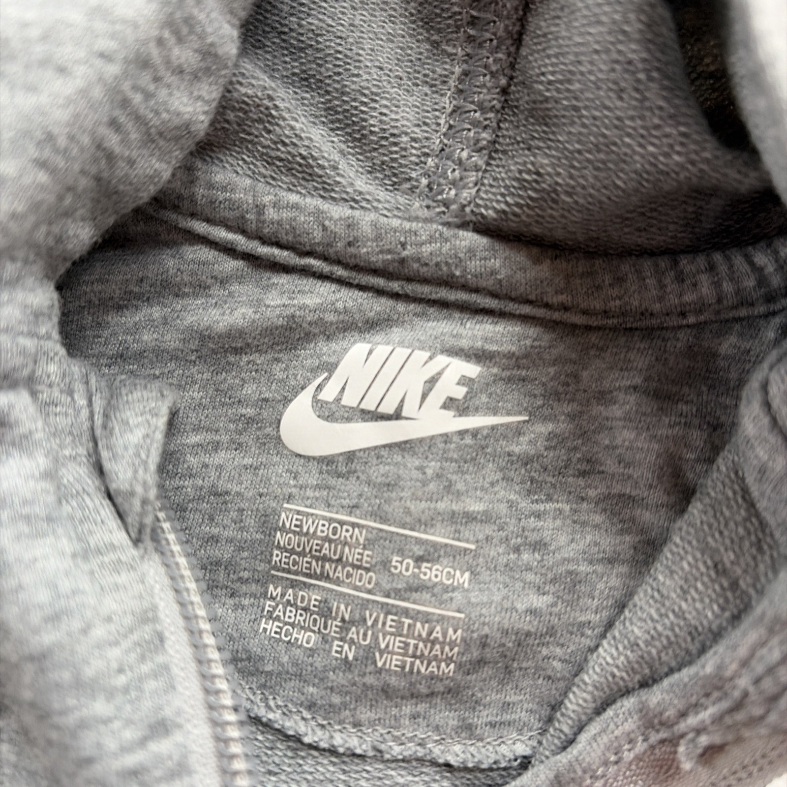 NIKE Size Newborn Baby Boy Girl Gray Hooded Zip Coverall Romper Clothes Outfit