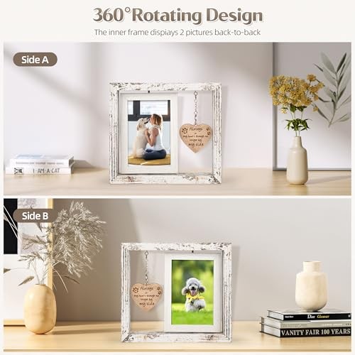 Dog Memorial Picture Frame with Rotating 4x6 Display, Wooden Pet Loss Sympathy