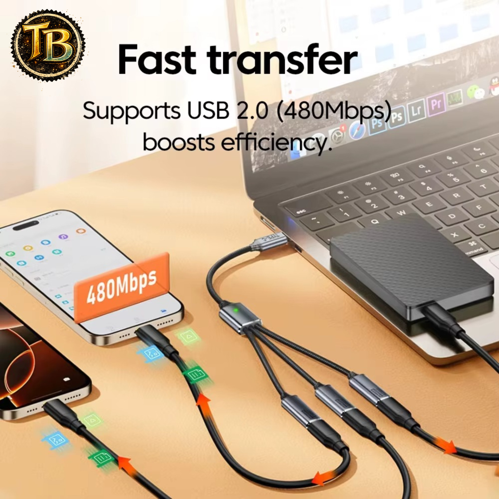 3 in 1 USB Splitter Hub Type C OTG Adapter Multi Port Charger Cable