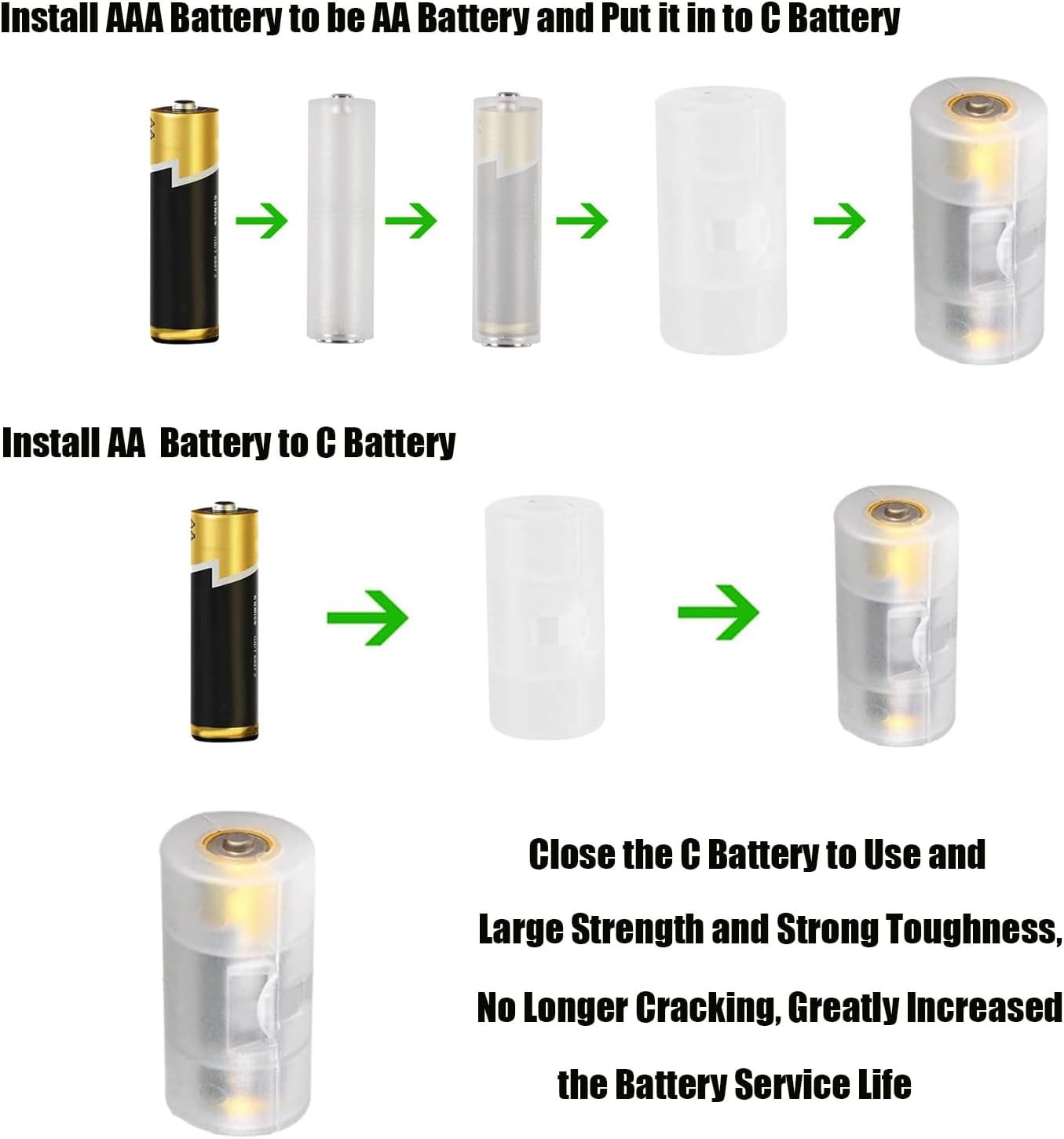 10pcs AA to C Size Battery Adapter Converter AA to Size C Battery Adapters Case