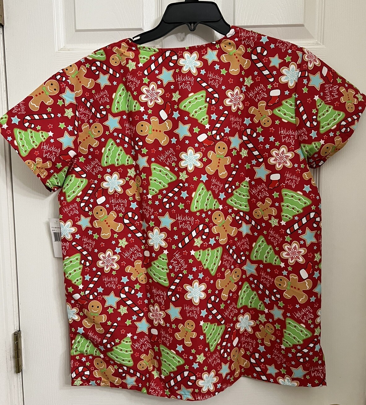 Women s Cassandra O Christmas Scrub Top, Size Large. New With Tags.