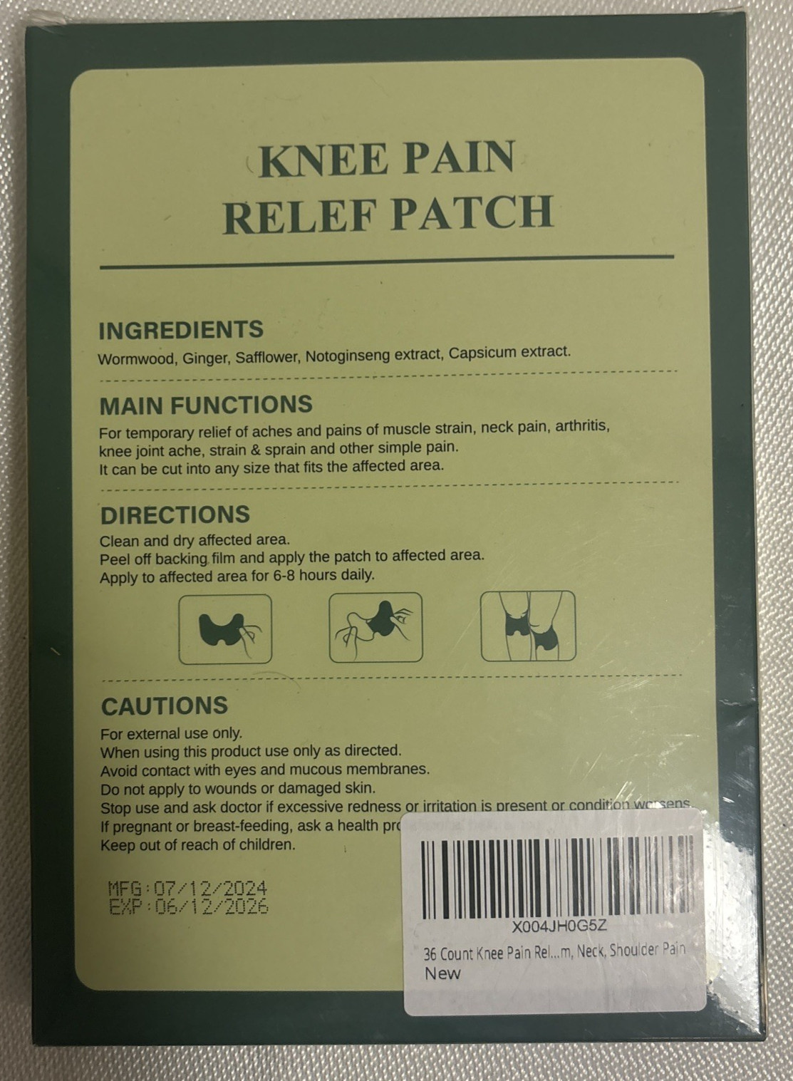 NEW/SEALED Knee Pain Relief Patches, Herbal Warming Plaster, 36 patches Exp06/26