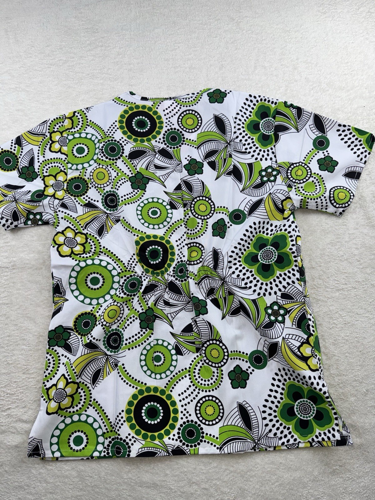 Delta Uniforms Women s Mock Wrap Scrub Top Size Small Green Black Floral Design