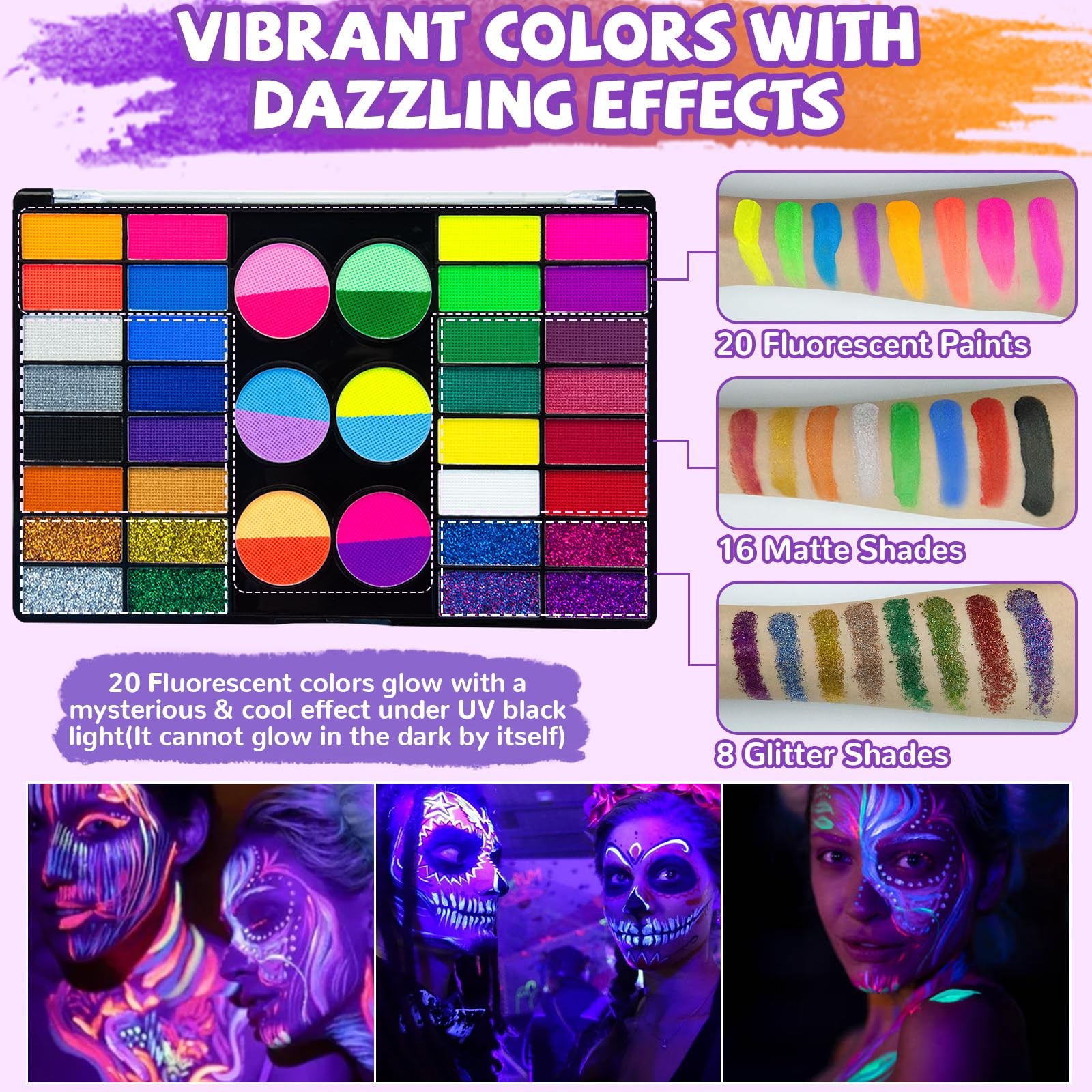 Professional Face Painting Kit 44 Color Water Activated Facepaint Makeup Ki...