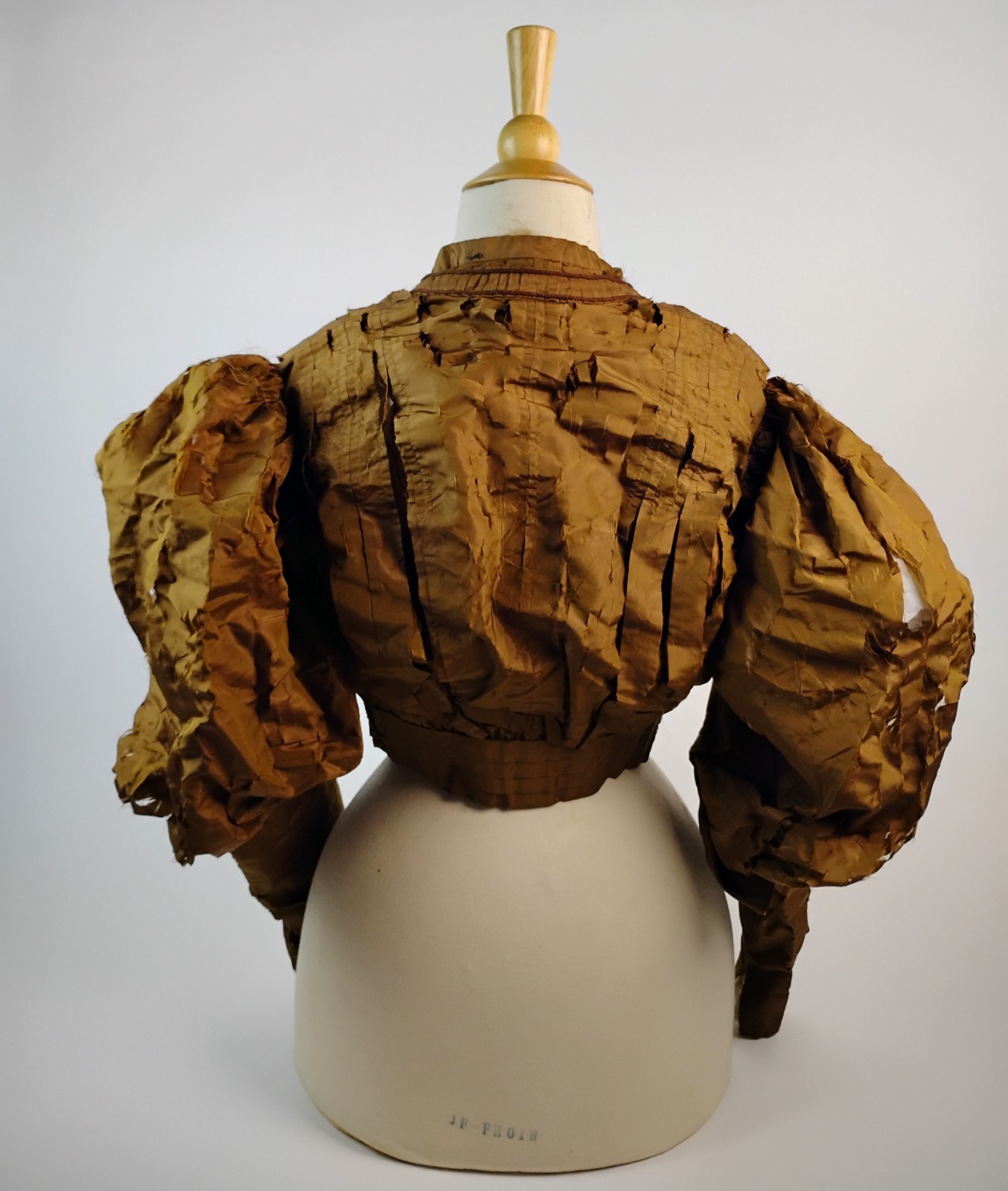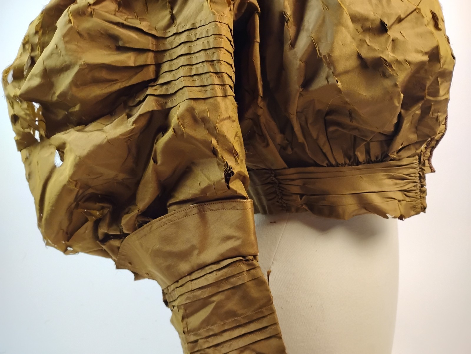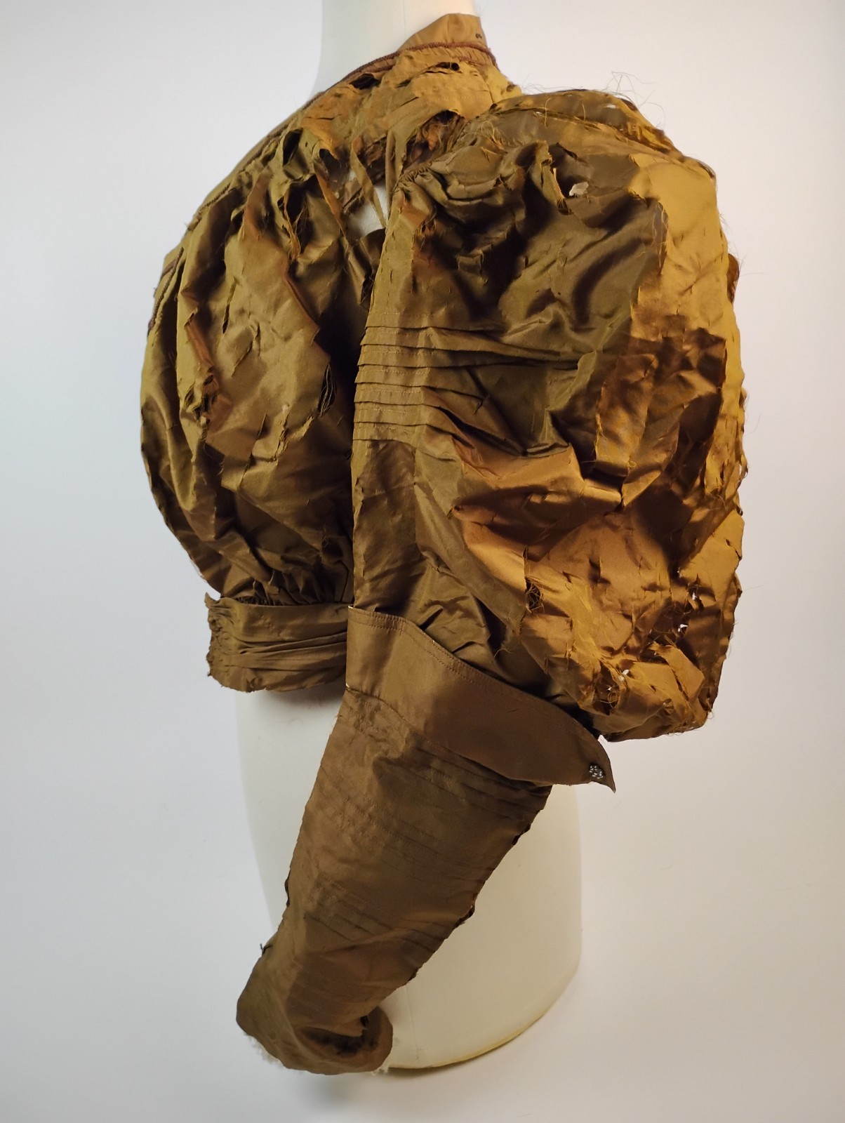 как выглядит Antique 1890s Golden Brown Silk Bodice  Puff Sleeves, Pleated Detail for Study фото