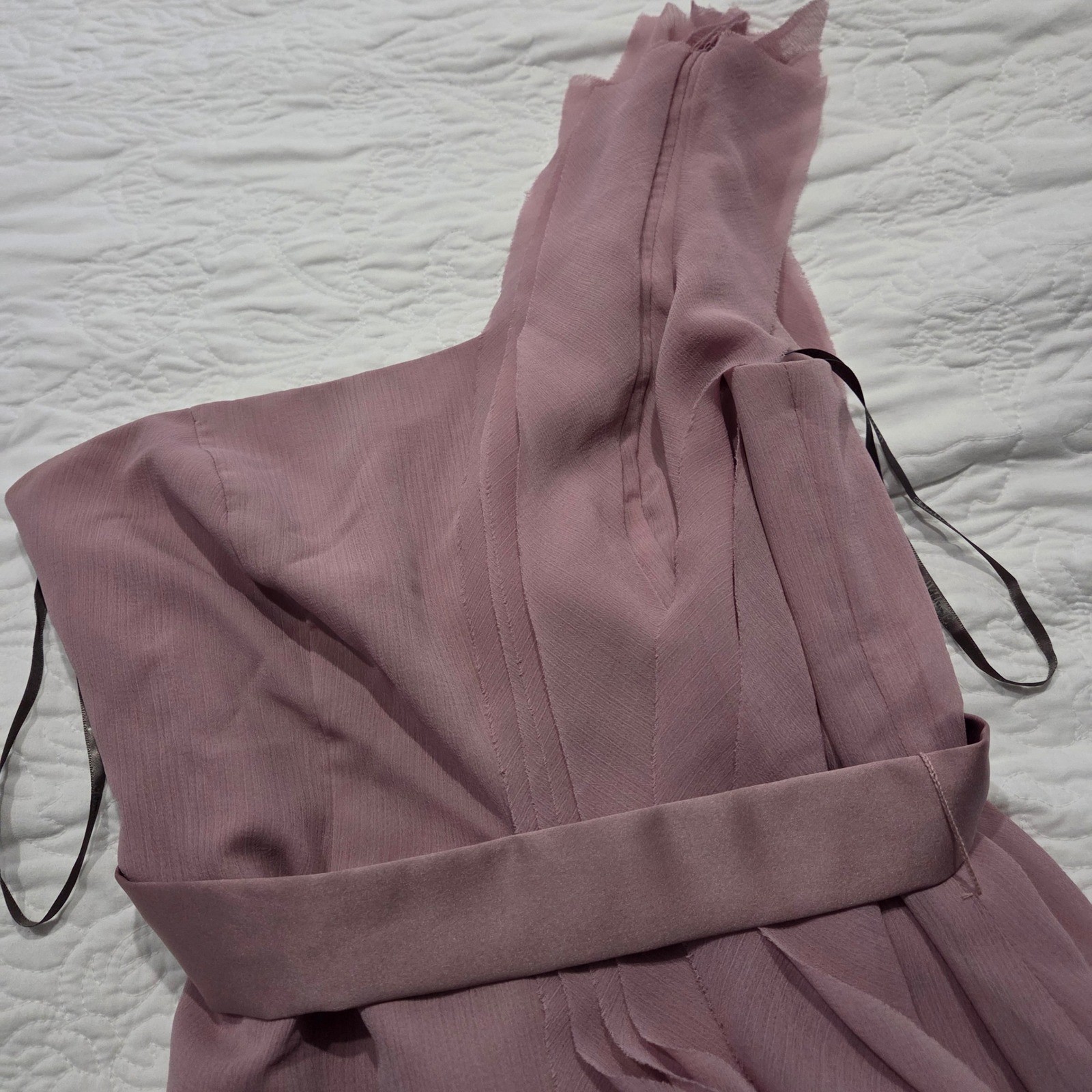 как выглядит White by Vera Wang One Shoulder Ruffle Detail Gown "Quartz" Formal Evening Sz 4 фото