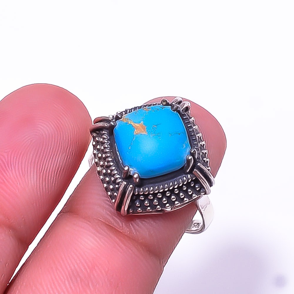 Copper Blue Turquoise Solitaire 925 Sterling Silver Ring 8 R23, Christmas Gift
