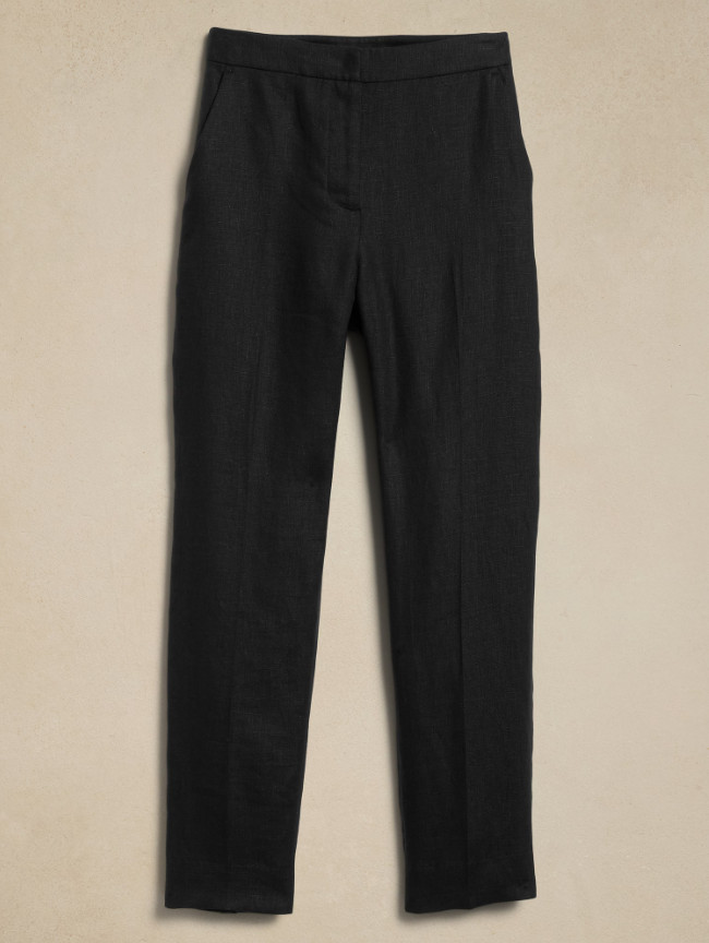 Banana Republic 100 Linen High Rise Lina Slim Ankle Pants Black sz 12 NWT 110