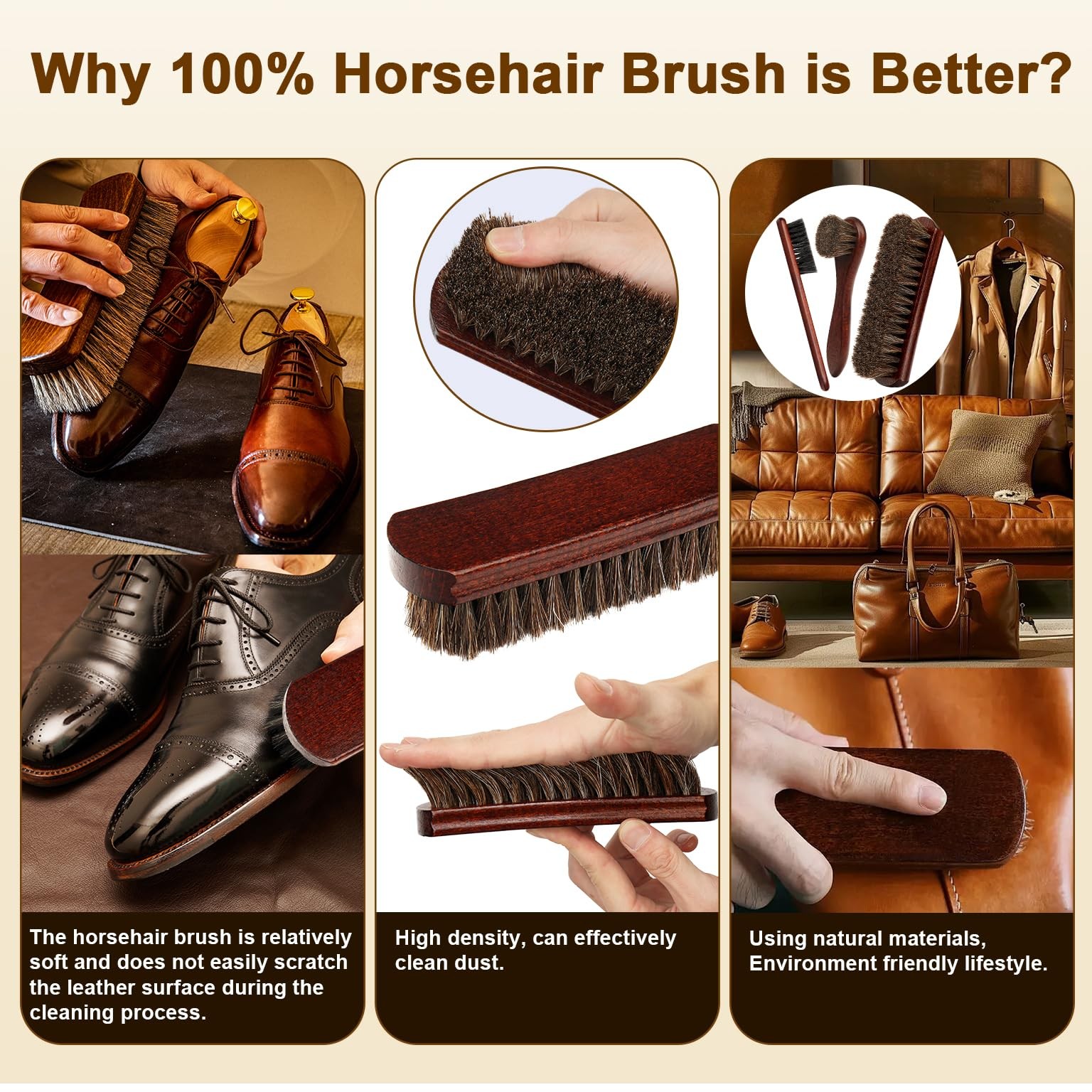 4-Piece 100 Horse Hair Shoe Brush Kit for Leather Care Professional Dauber ...