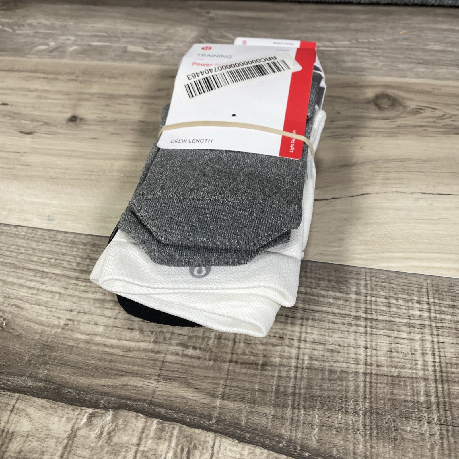 NWT 48 Lululemon Power Stride Crew Socks 3 Pack - WHT/HTRG/BLK - Size Small