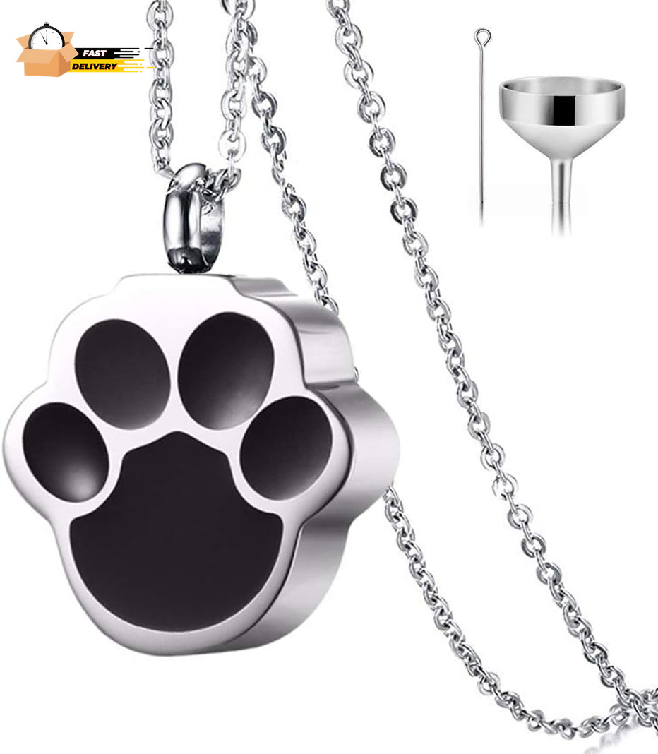 Pet Cat Dog Paw Print Cremation Jewelry for Ashes Wearable Urn Necklace Ke