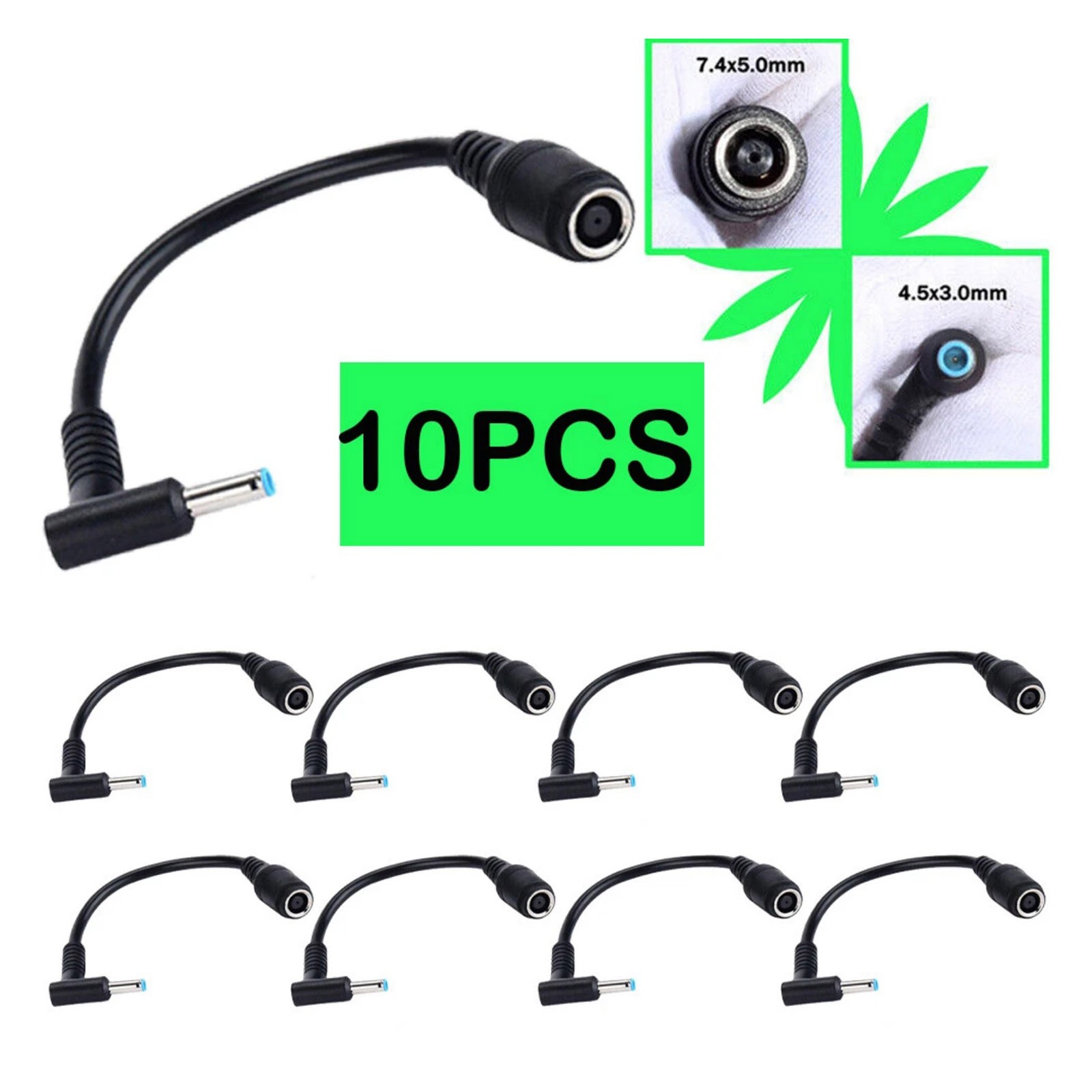 10 PCS DC Power Converter Adapter Cable 7.4mm to 4.5mm For HP Laptop Blue Tip