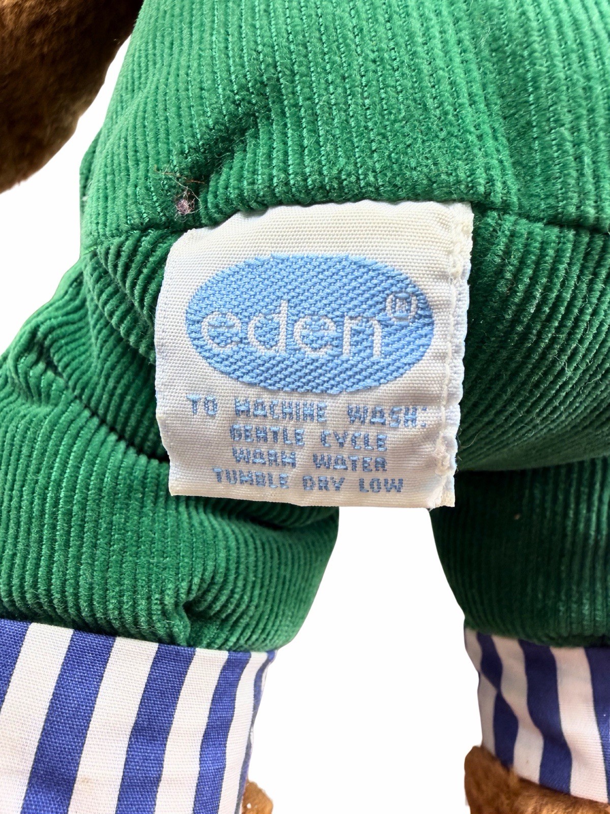 как выглядит Vintage 1996 Corduroy Bear Plush Eden Viacom Don Freeman Green Overalls 12in фото