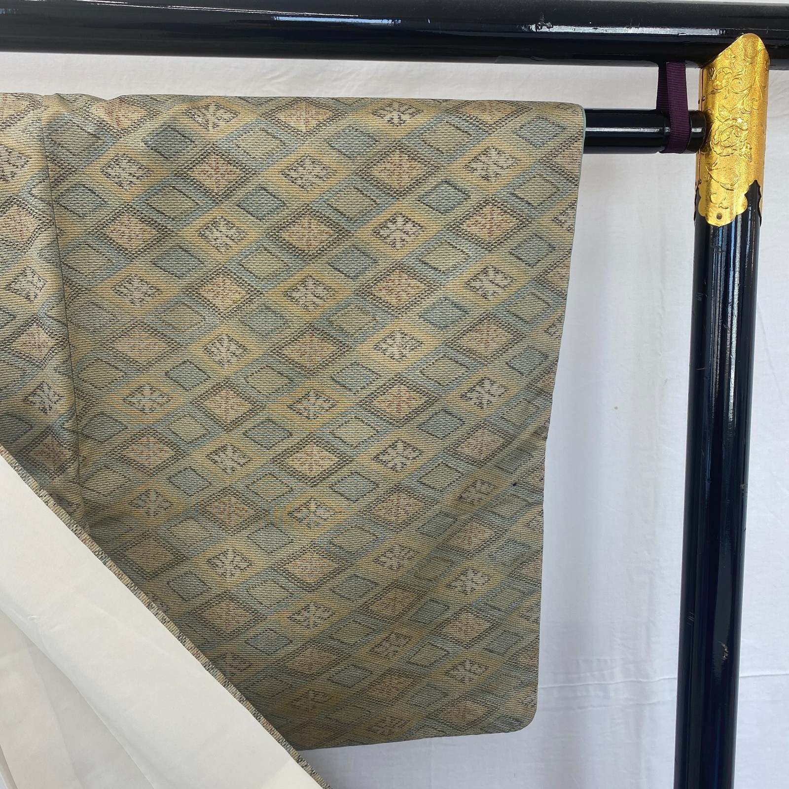 Japanese Vintage Kimono Silk Beige Oshima Traditional Authentic Length 62 in