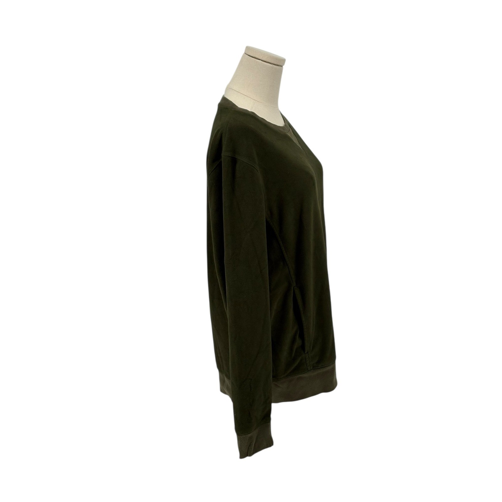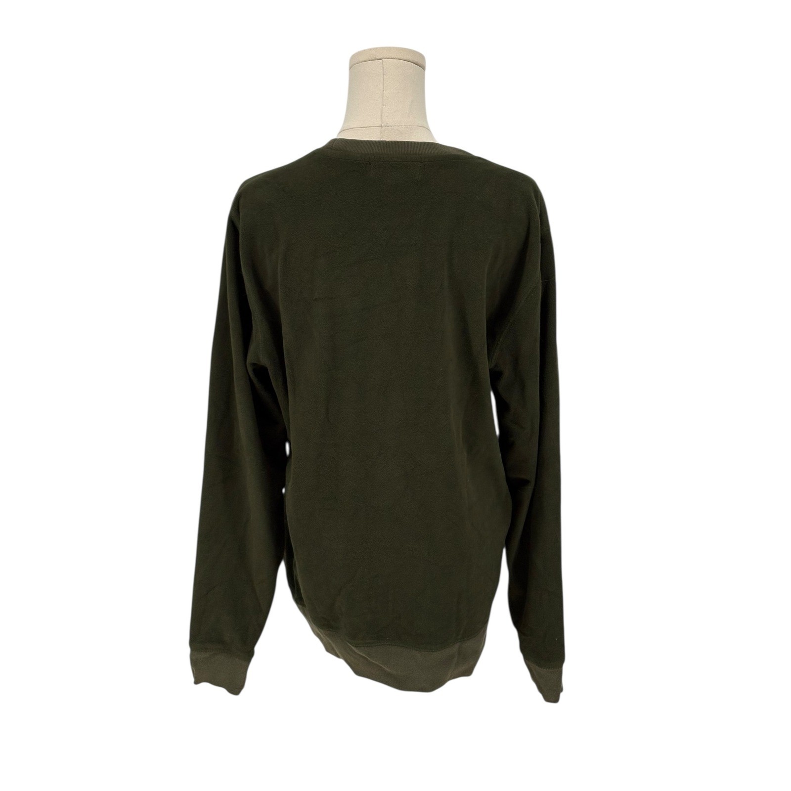 Mens Dark Green Fleece Crewneck Sweatshirt Long Sleeve V-Stitch Accent