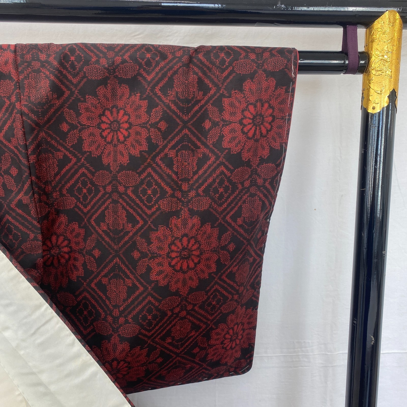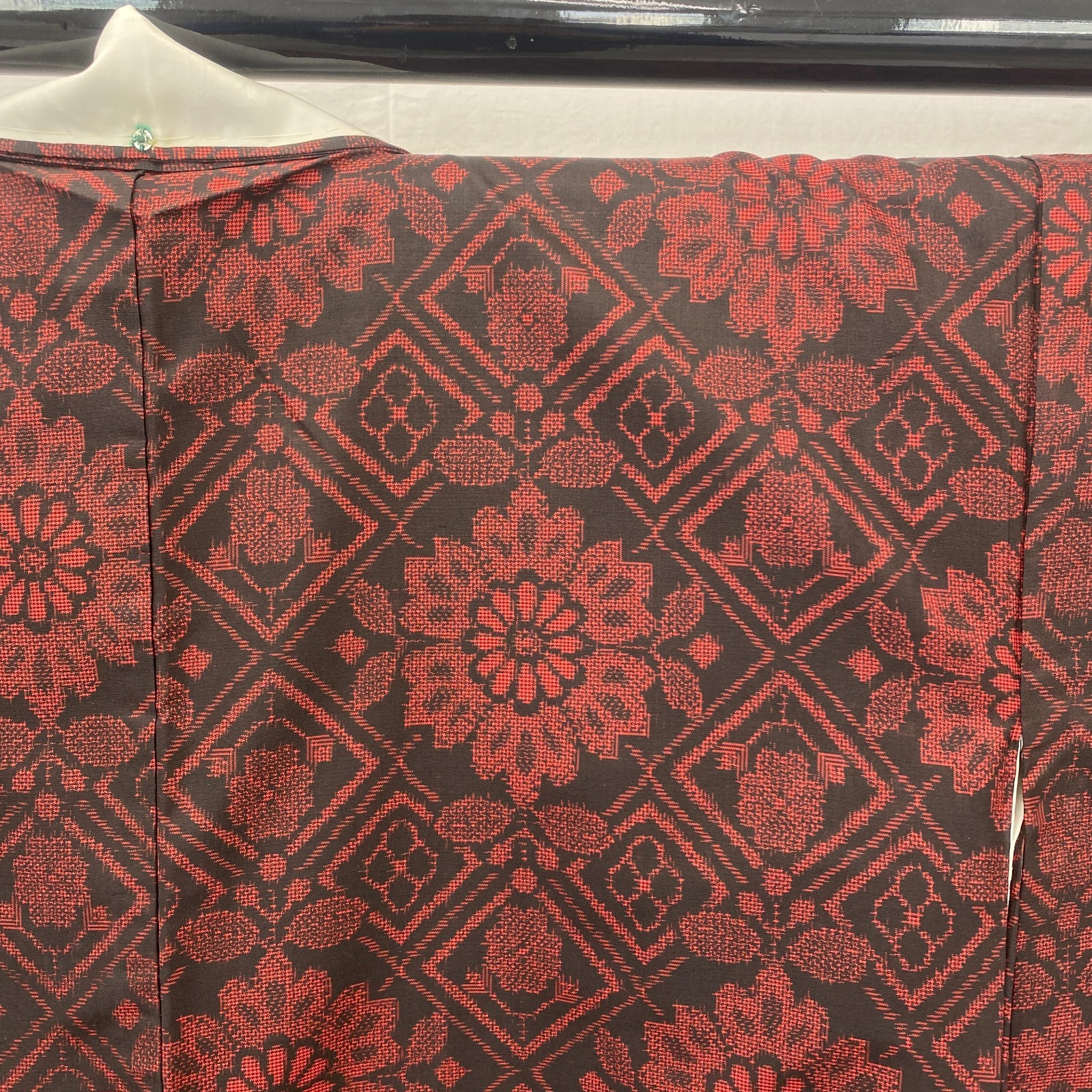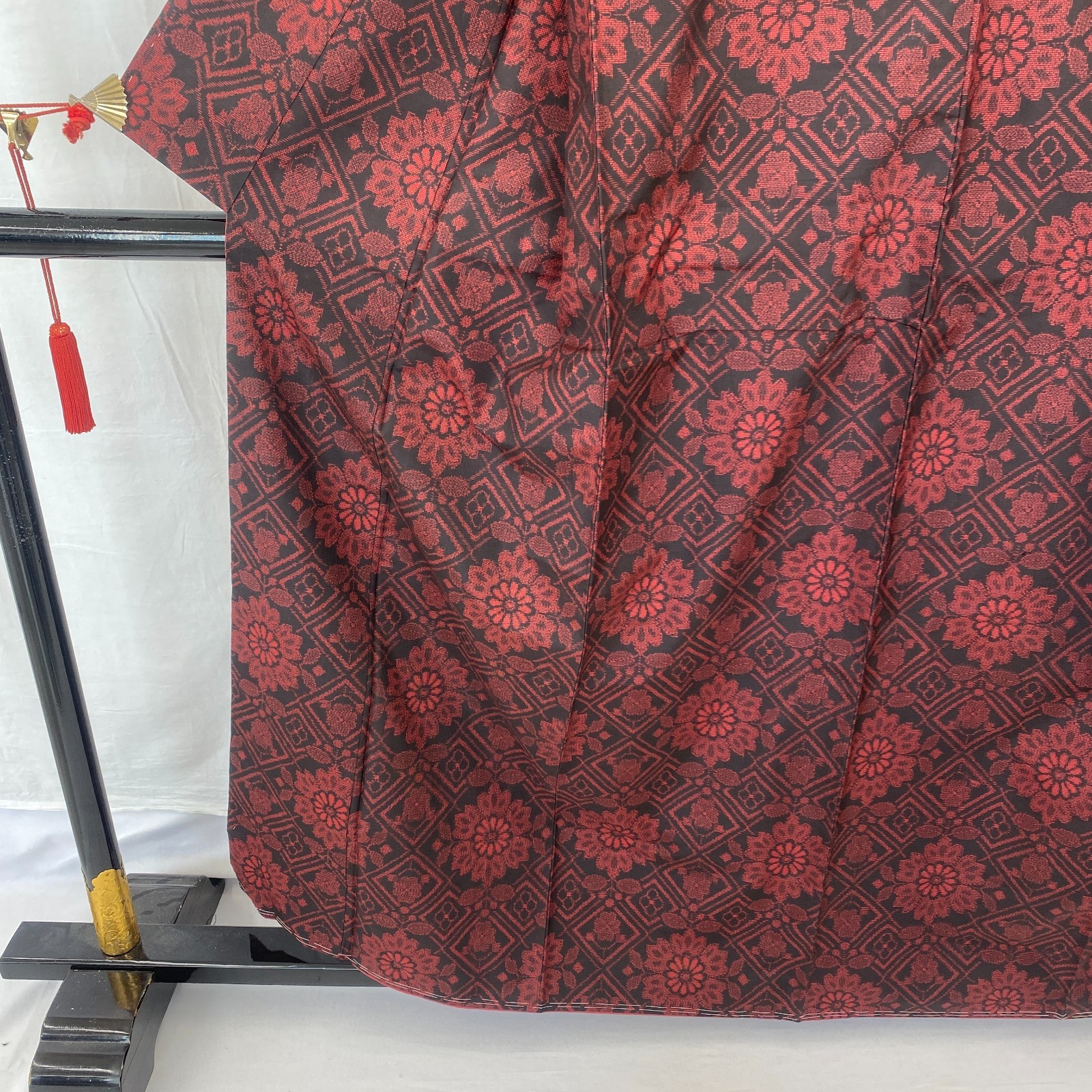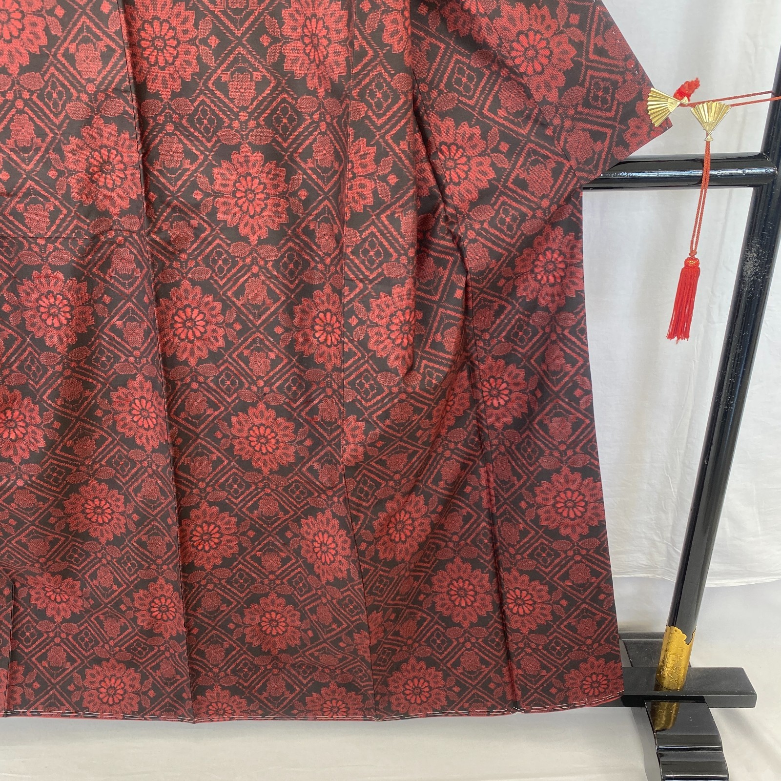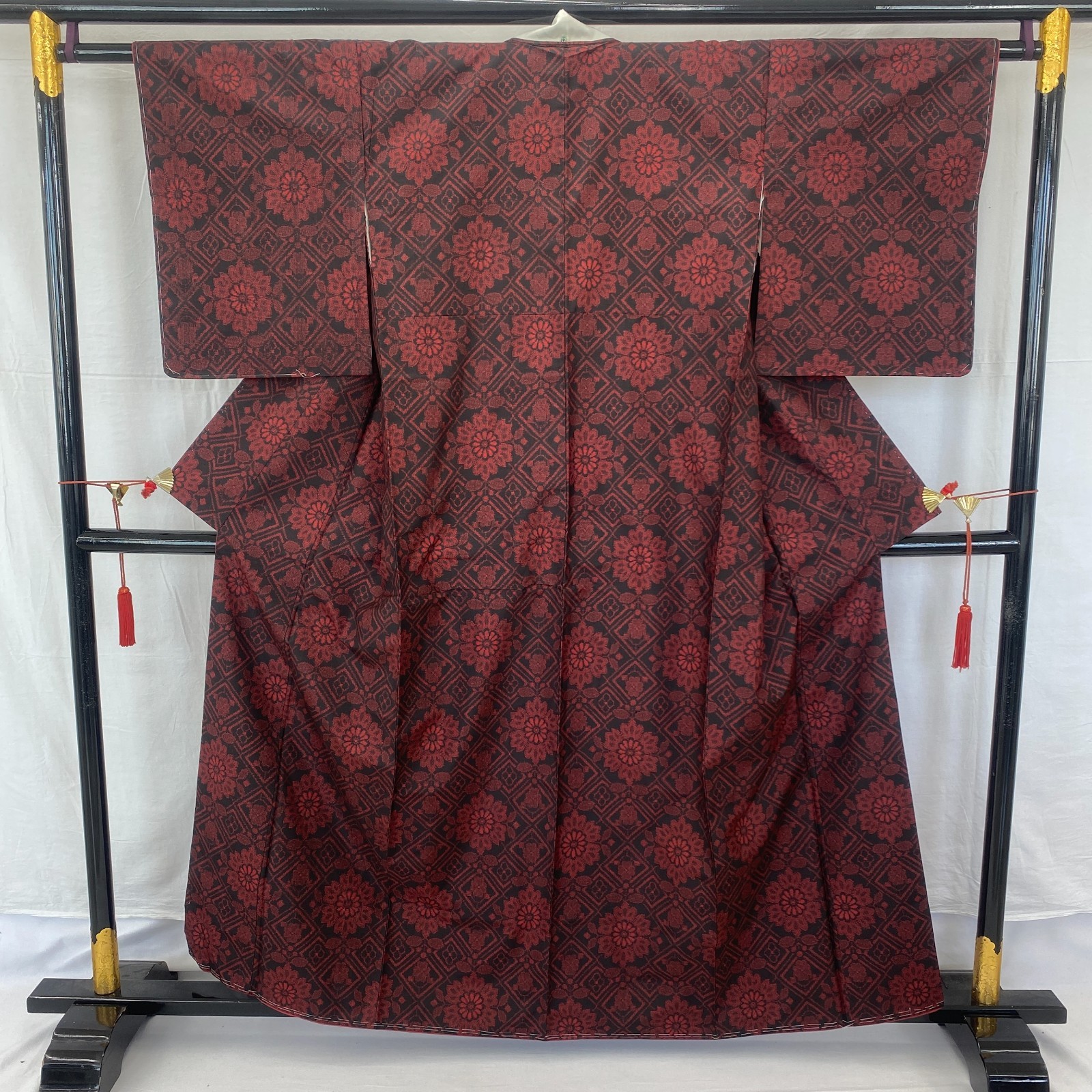 как выглядит Japanese Vintage Kimono Silk Black Oshima Traditional Authentic Length 61 in фото