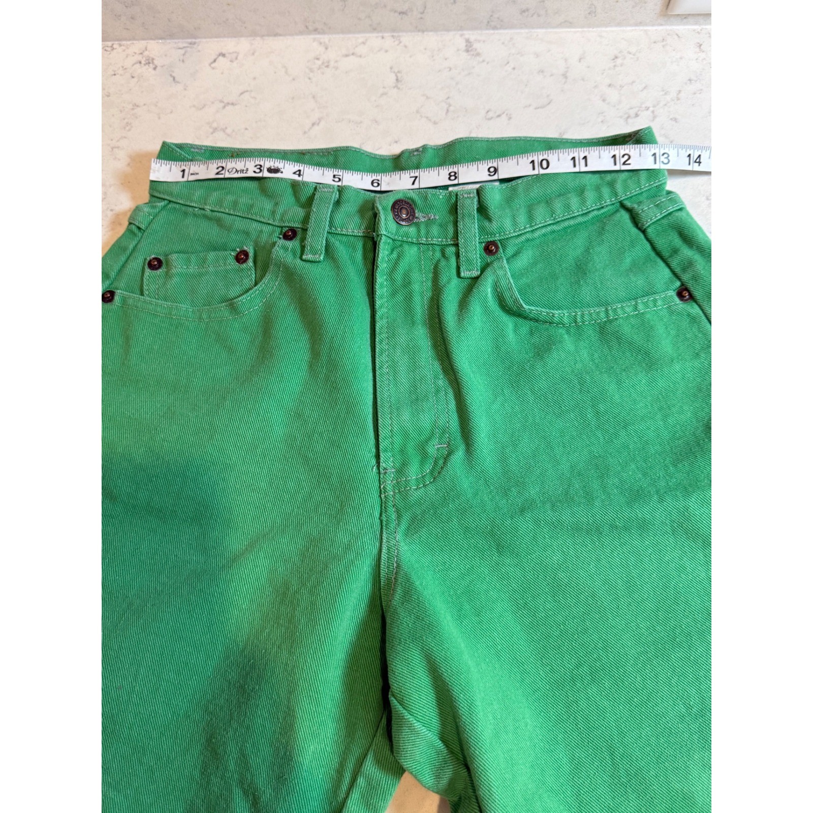 как выглядит Vintage Jordache Green Denim High Waisted Shorts Womens 26 Waist 80s 90s Retro фото