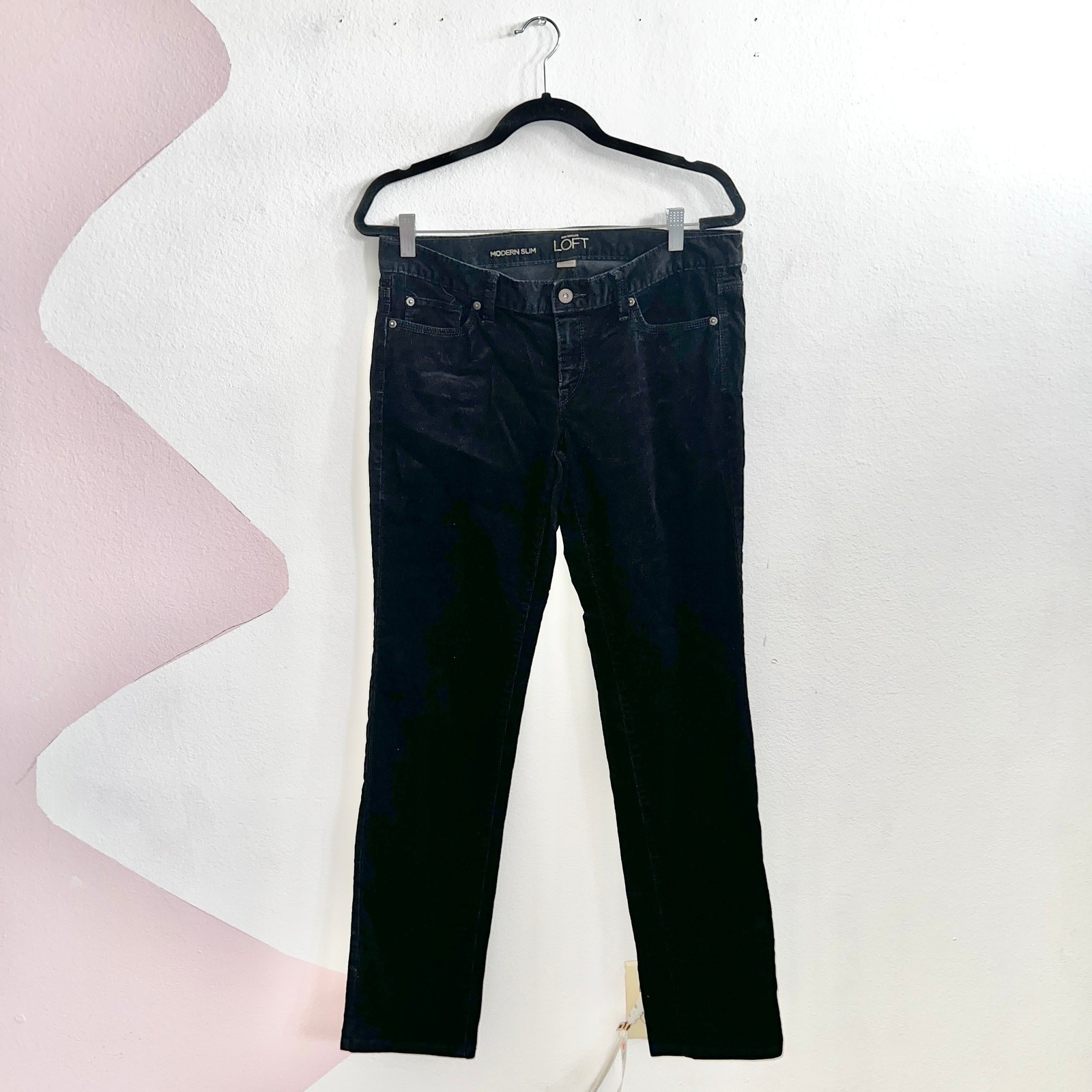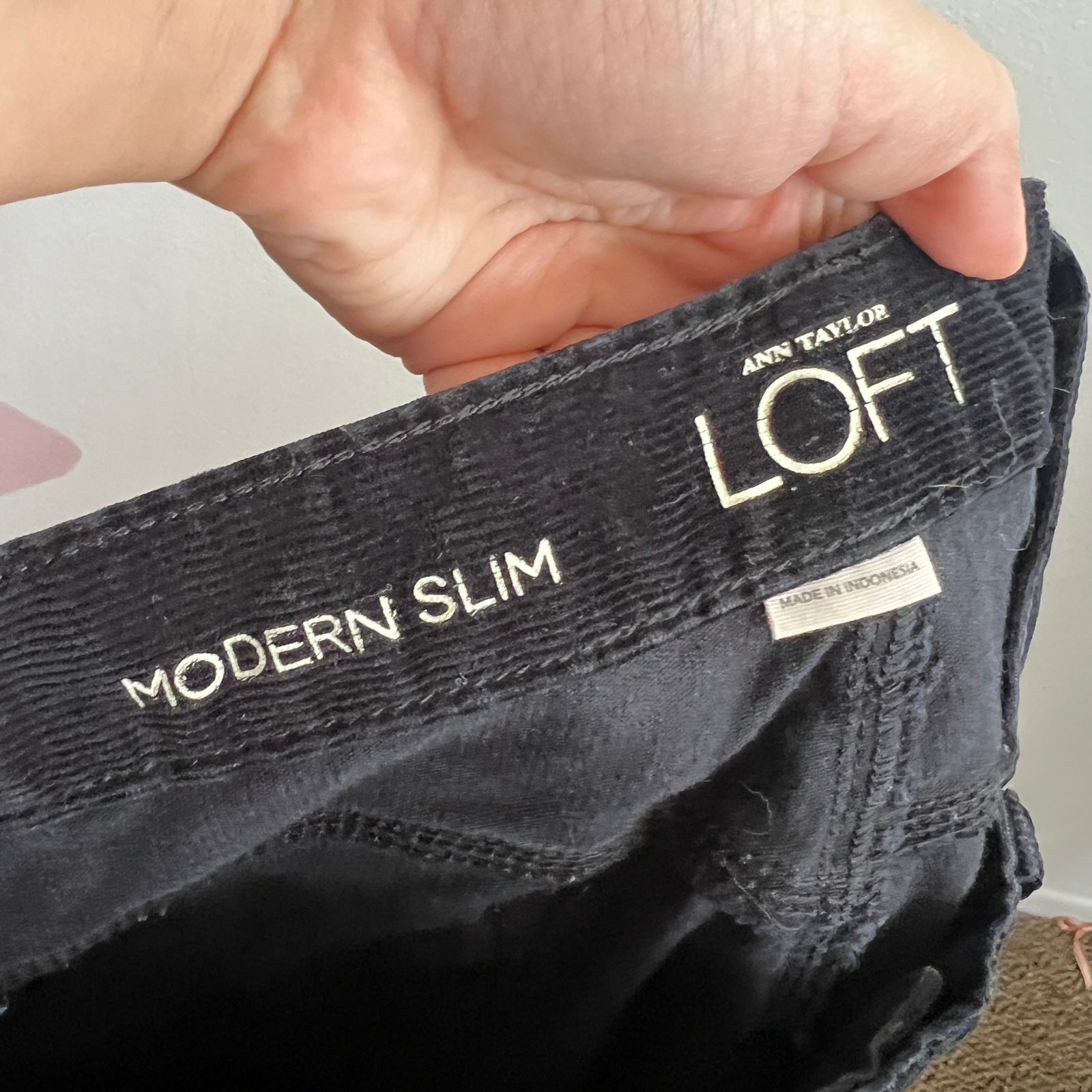 как выглядит Ann Taylor Loft Black Corduroy Pants Modern Slim Minimalist Quiet Luxury Sz 8 фото