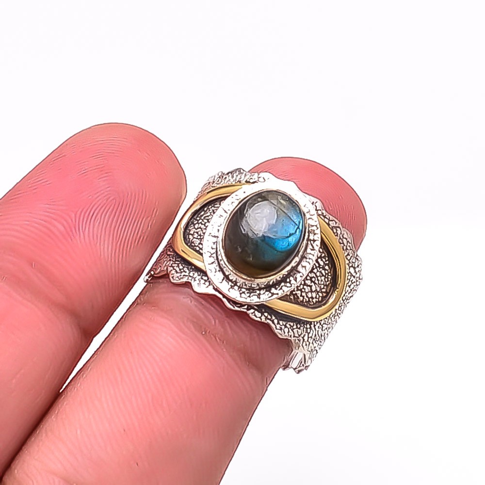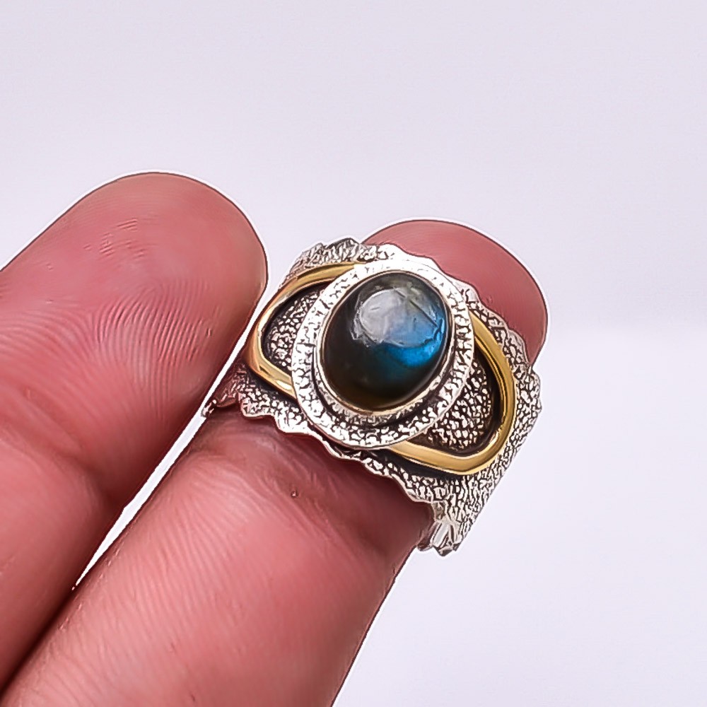 как выглядит Labradorite - Madagascar Oxidised 925 Sterling Silver Ring S.8 R12 фото