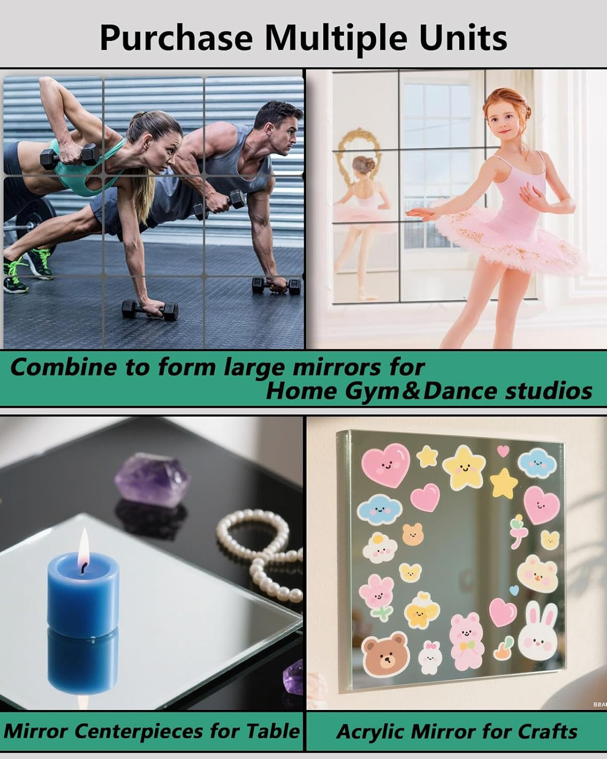 Unbreakable Peel and Stick Mirror Tiles - 4 Pcs Decorative Wall Mirrors
