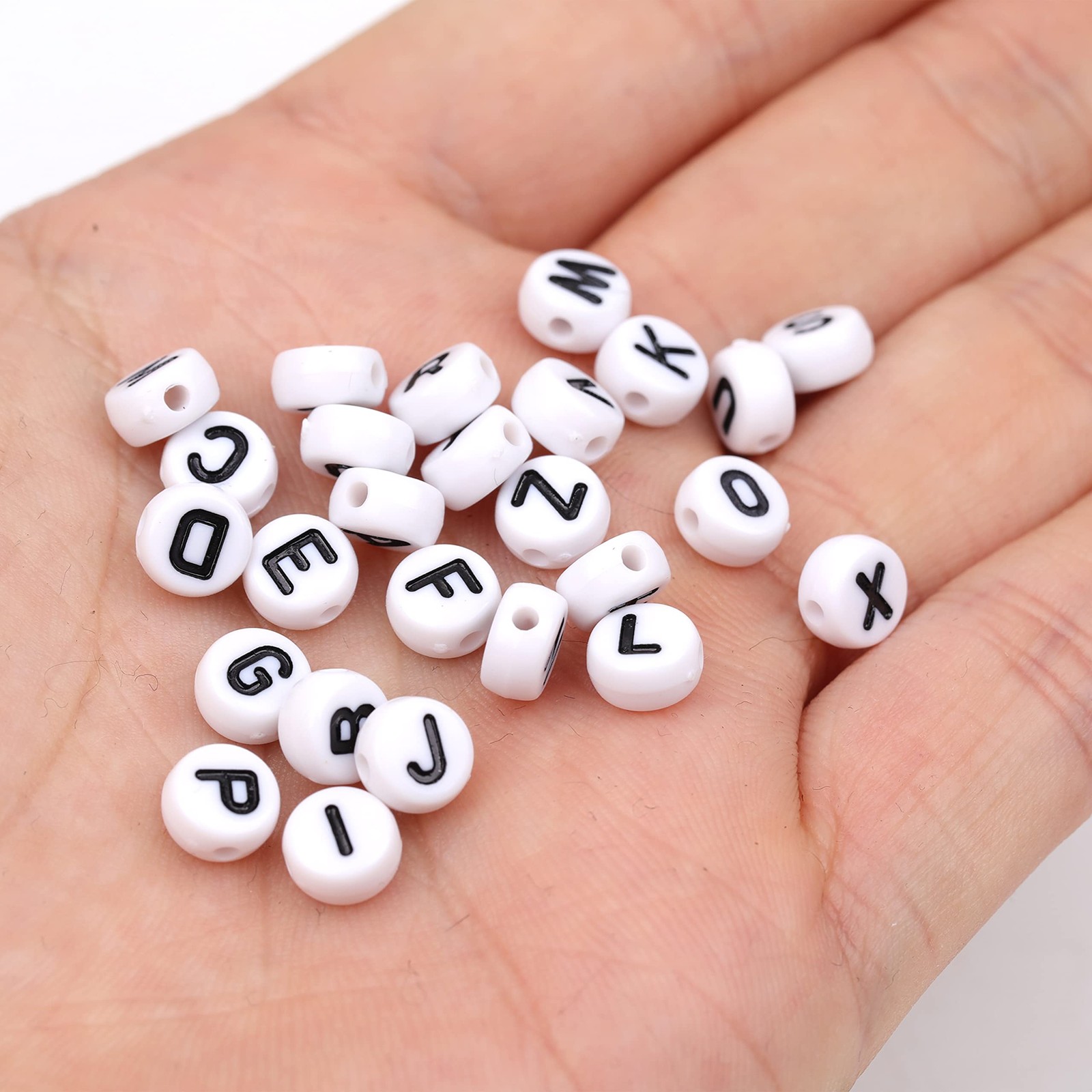 Auvoau 300Pcs Letter Beads D 4X7mm White Alphabet Acrylic D, Black
