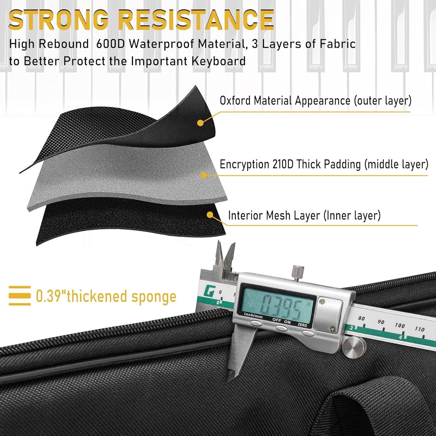 как выглядит 88 Key Keyboard Case Size:54"X7"X13.5" , Keyboard Gig Bag Case with Adjustable фото