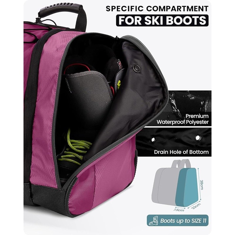 Waterproof Ski Boot Bag Anti-Slip Zipper Multiple Compartments Adjustable Straps