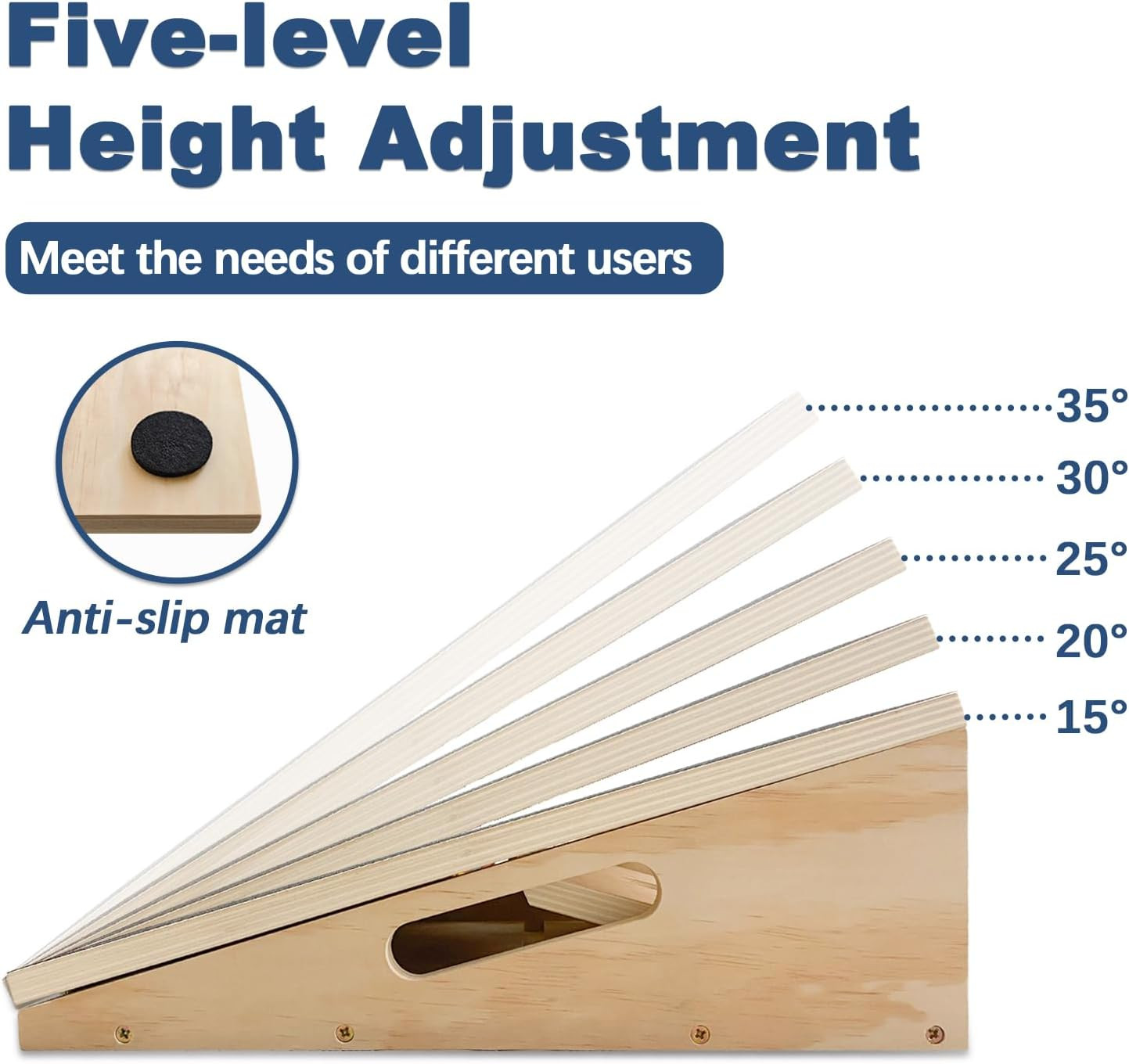 Adjustable Foot Incline Wooden Slant Board for Calf Stretching,440Lb Capacity, B