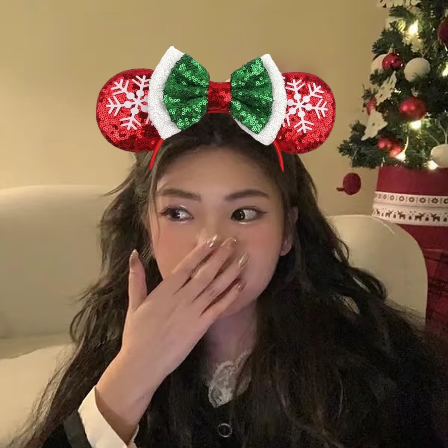 Christmas Headband Mouse Ears Bow Headbands 1 Count Pack of 1 , Style 1