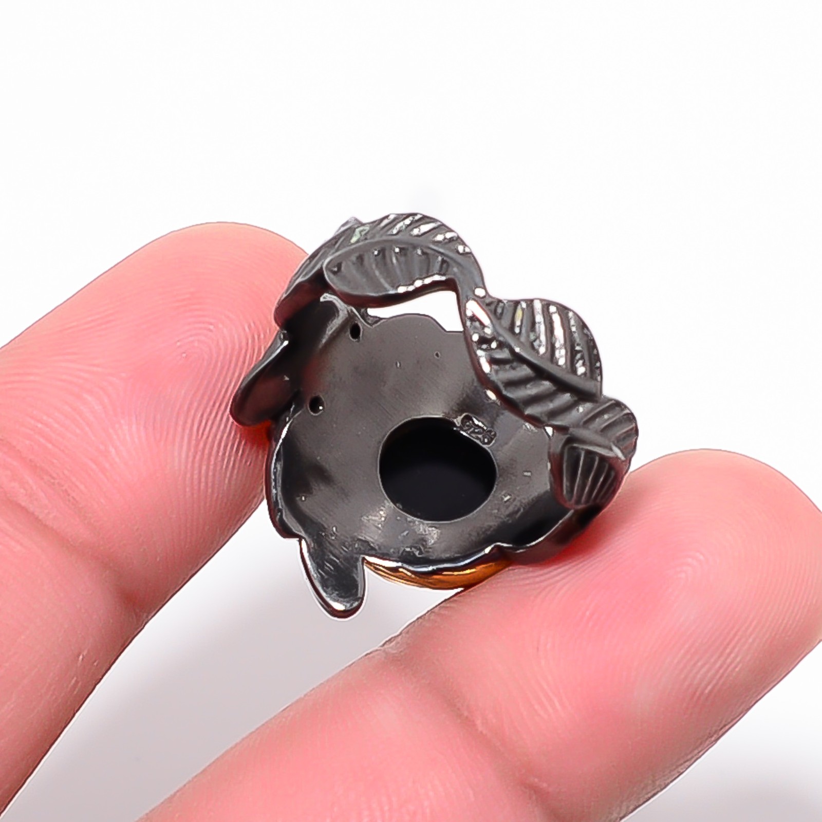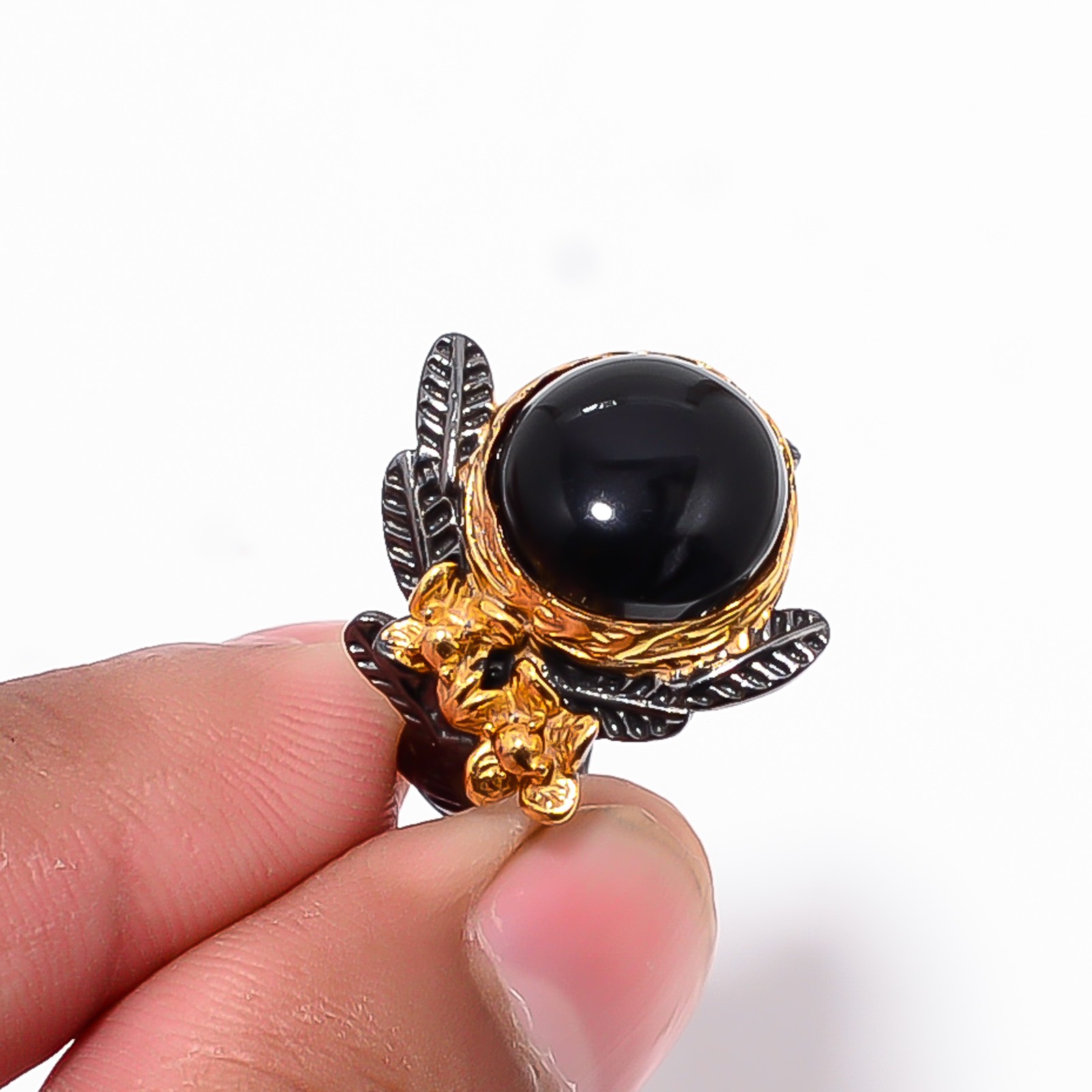 как выглядит Black Onyx - Brazil Black And Gold Plated 925 Sterling Silver Ring S.8 R87327 фото