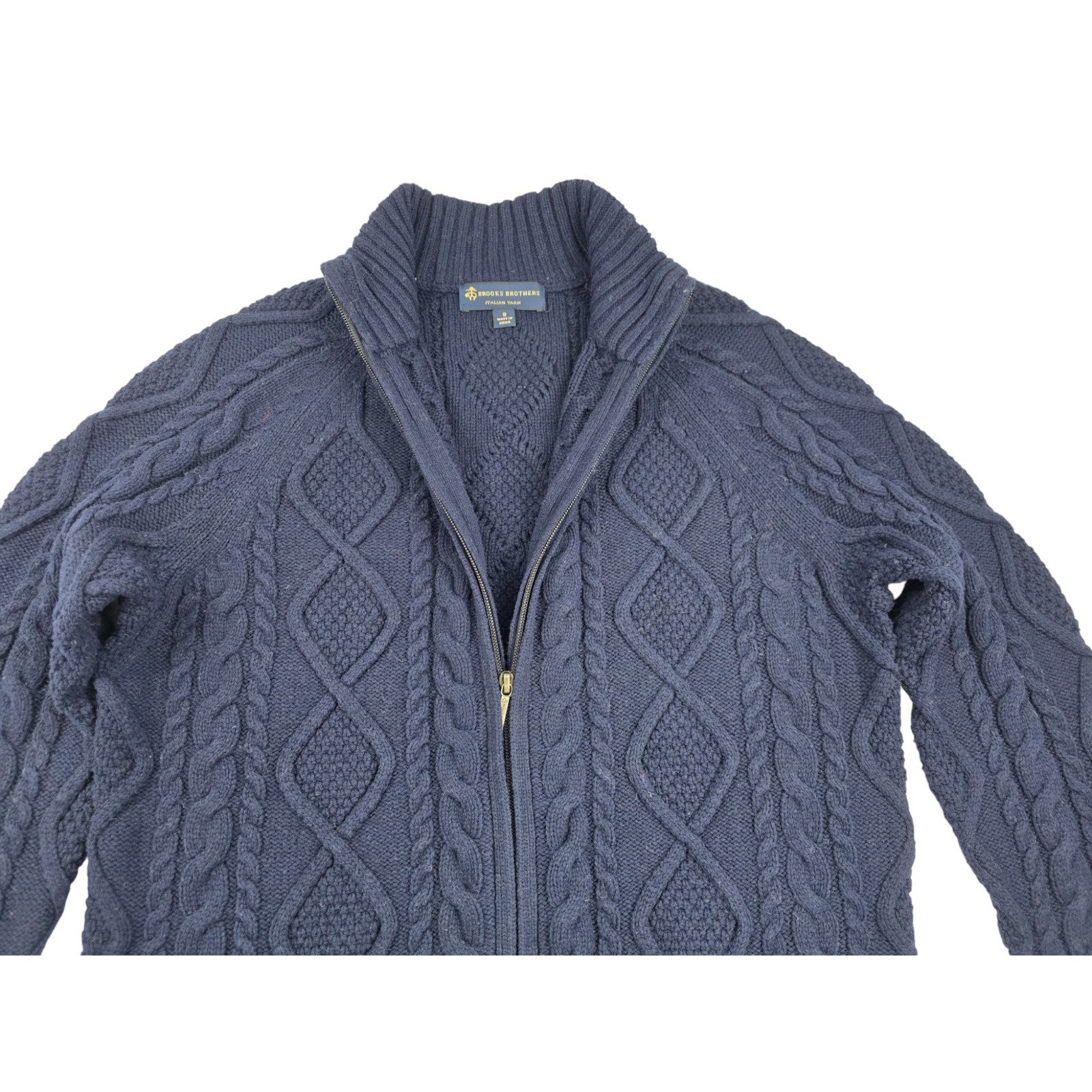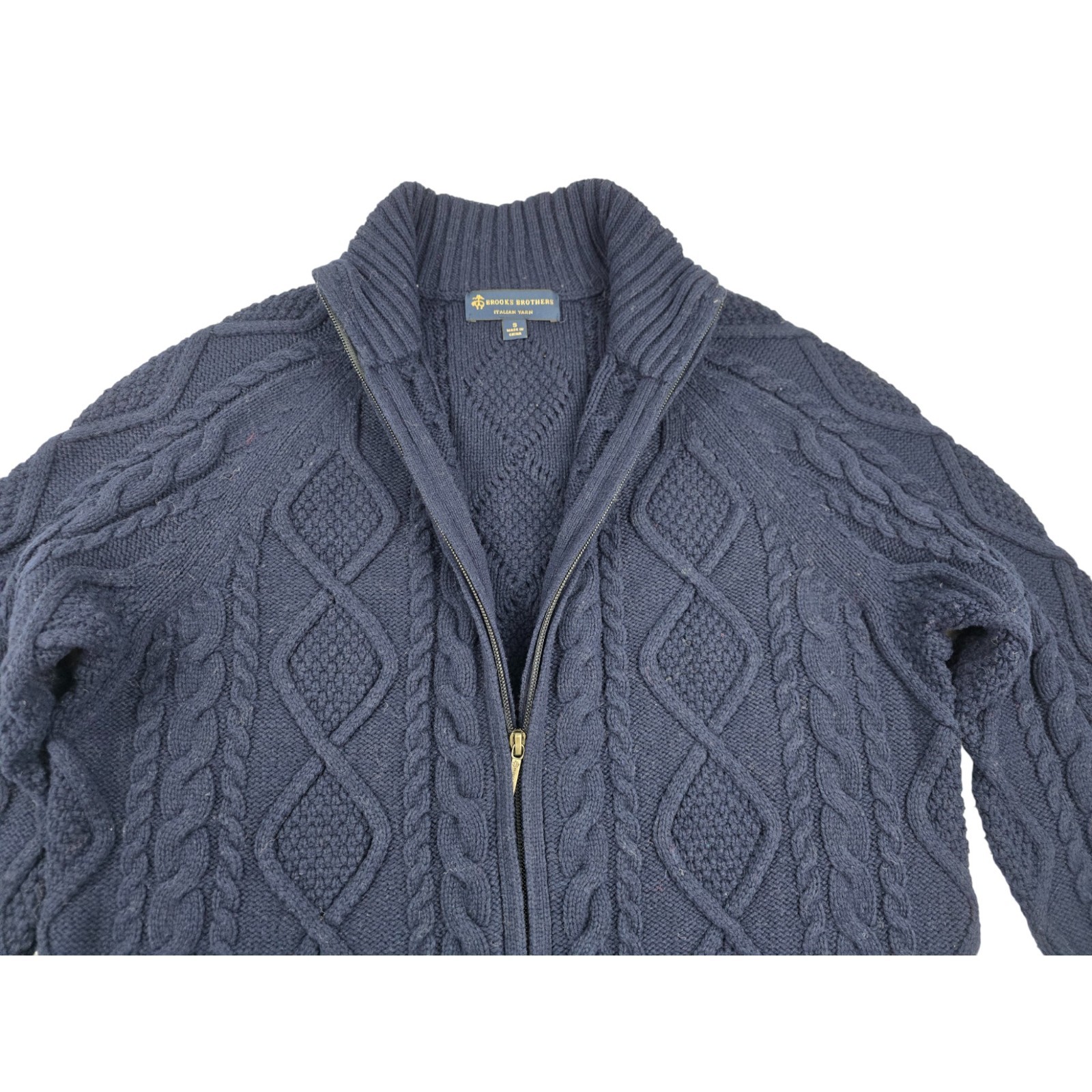 Brooks Brothers Men's Wool Cable Knit Aran Full Zip Sweater Size S Small 400