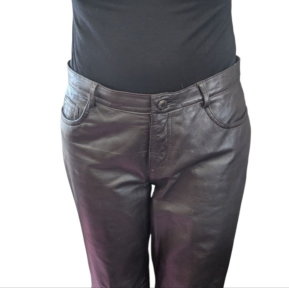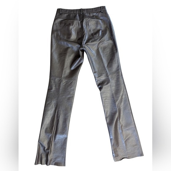 как выглядит Moda International Chocolate Brown Leather Pants Women 6 Tall Y2K Straight Leg фото