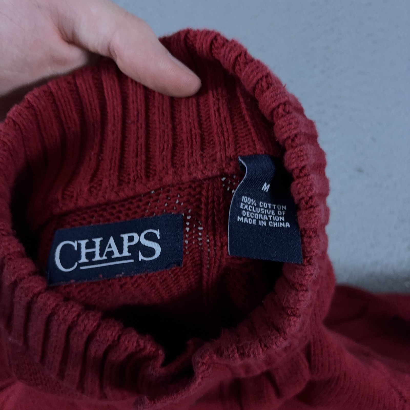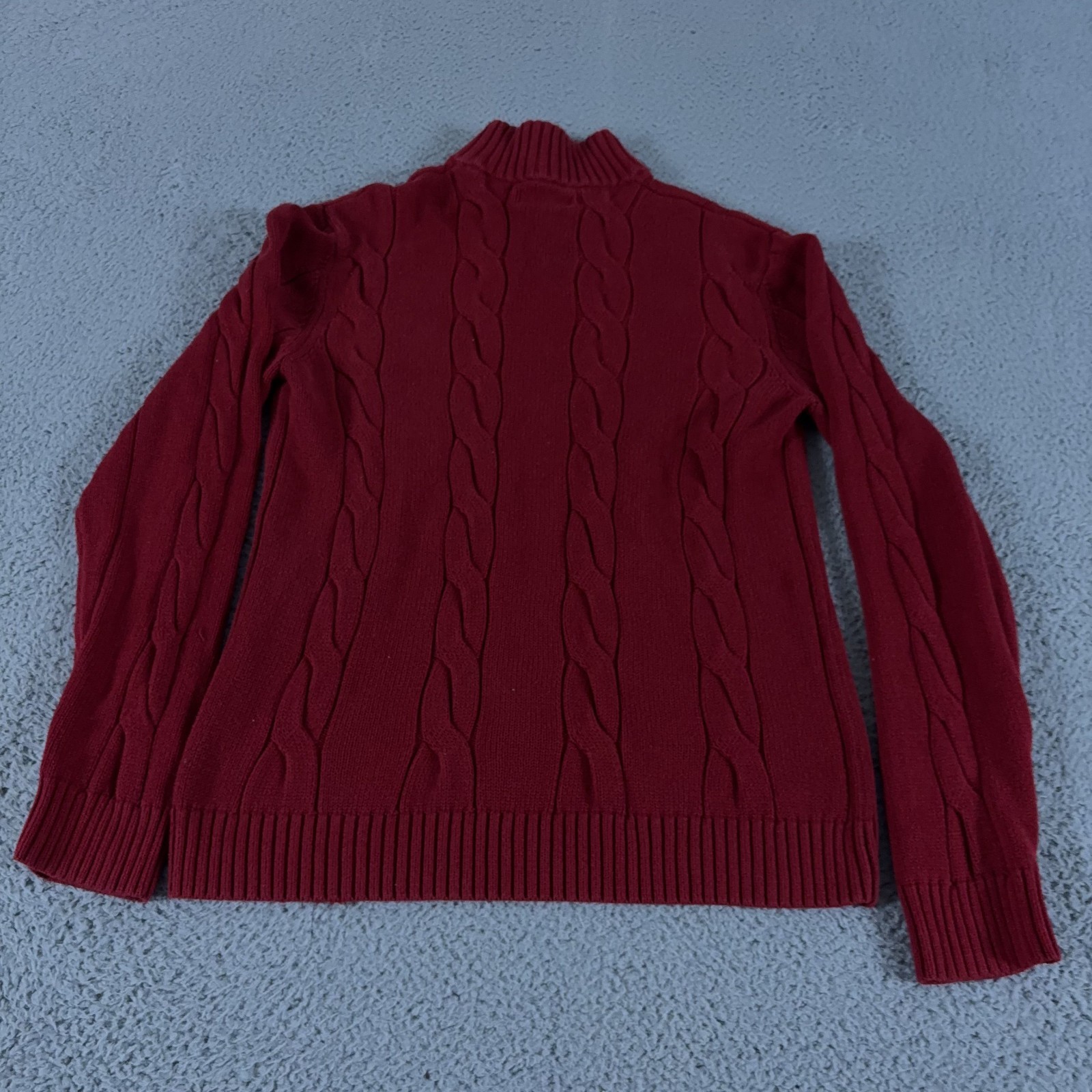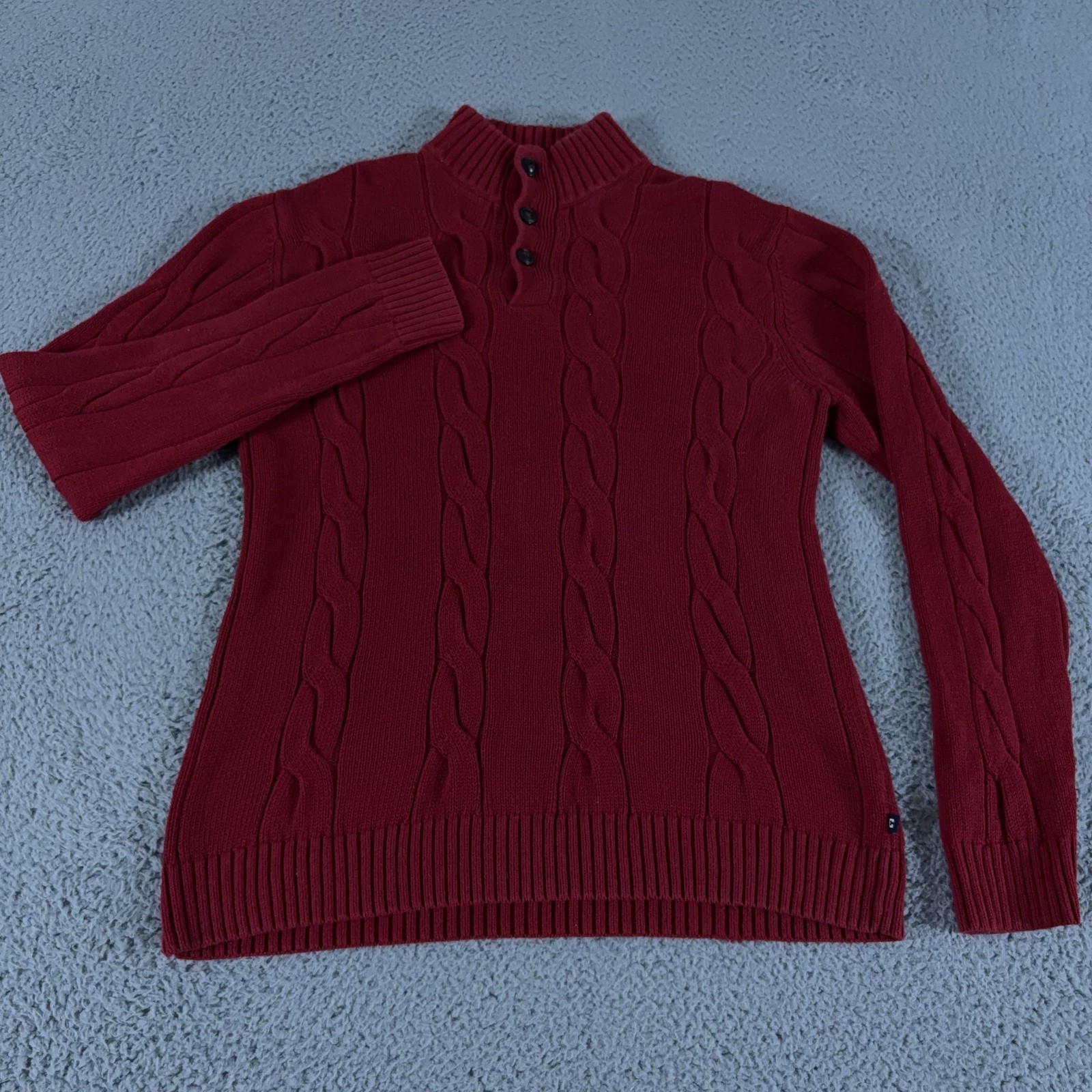 Chaps Sweater Mens Medium Red Cable Knit Henley Mock Neck Cotton Preppy Outdoor