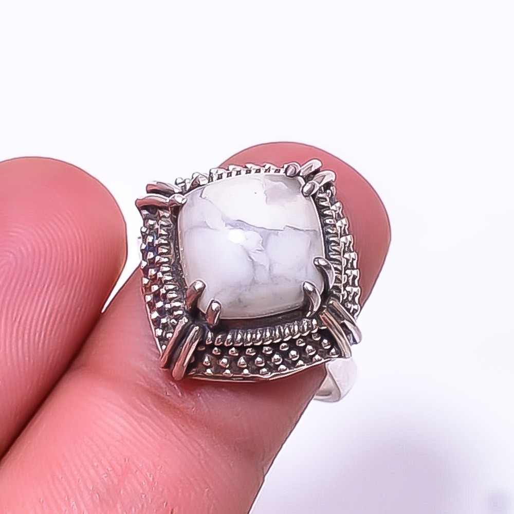 как выглядит White Howlite -United States 925 Sterling Silver Ring 7.5 R11, Christmas Gift фото