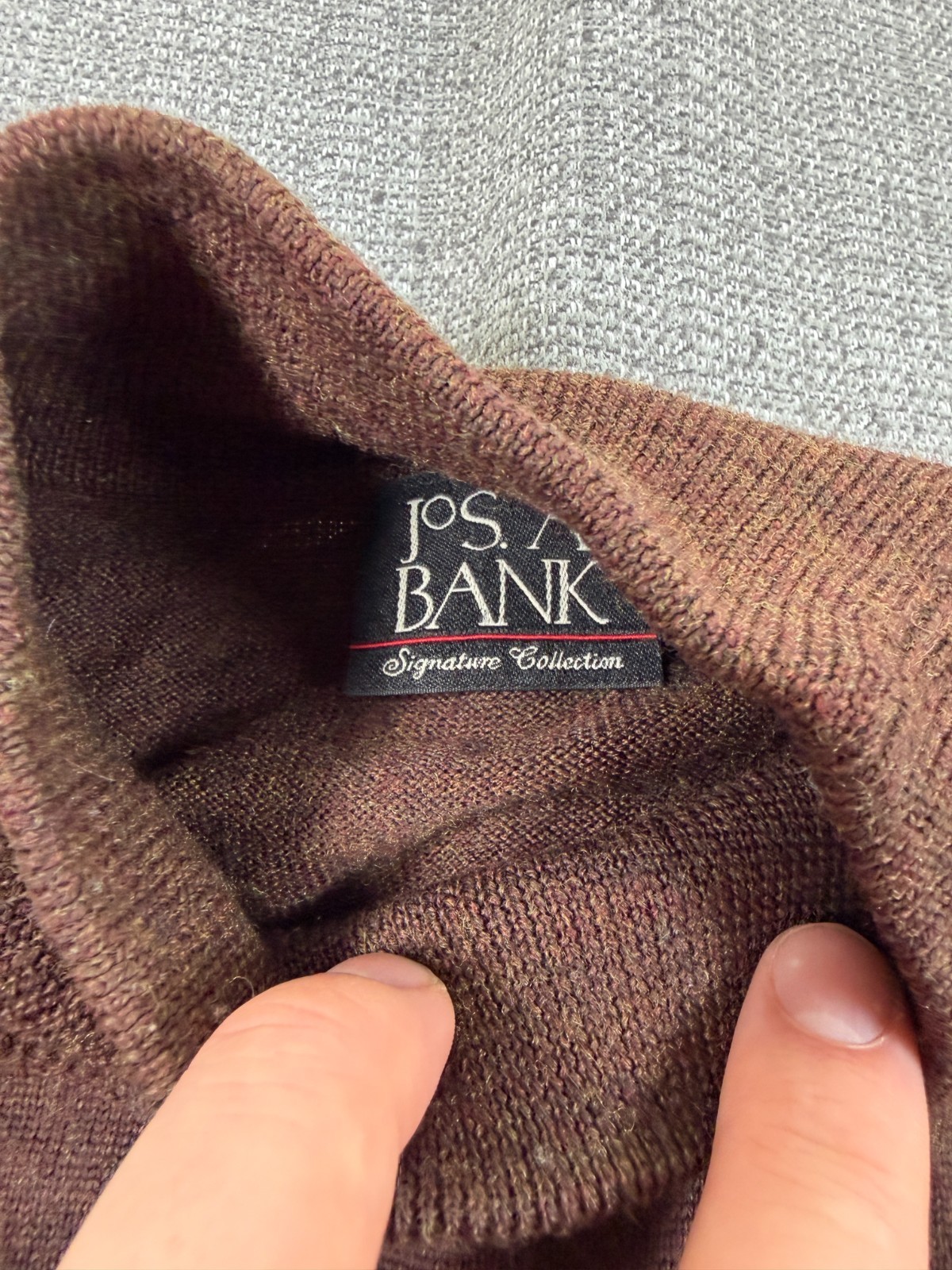 как выглядит Jos A Bank Signature Collection Sweater Mens Medium Brown Merino Wool Mock Neck фото