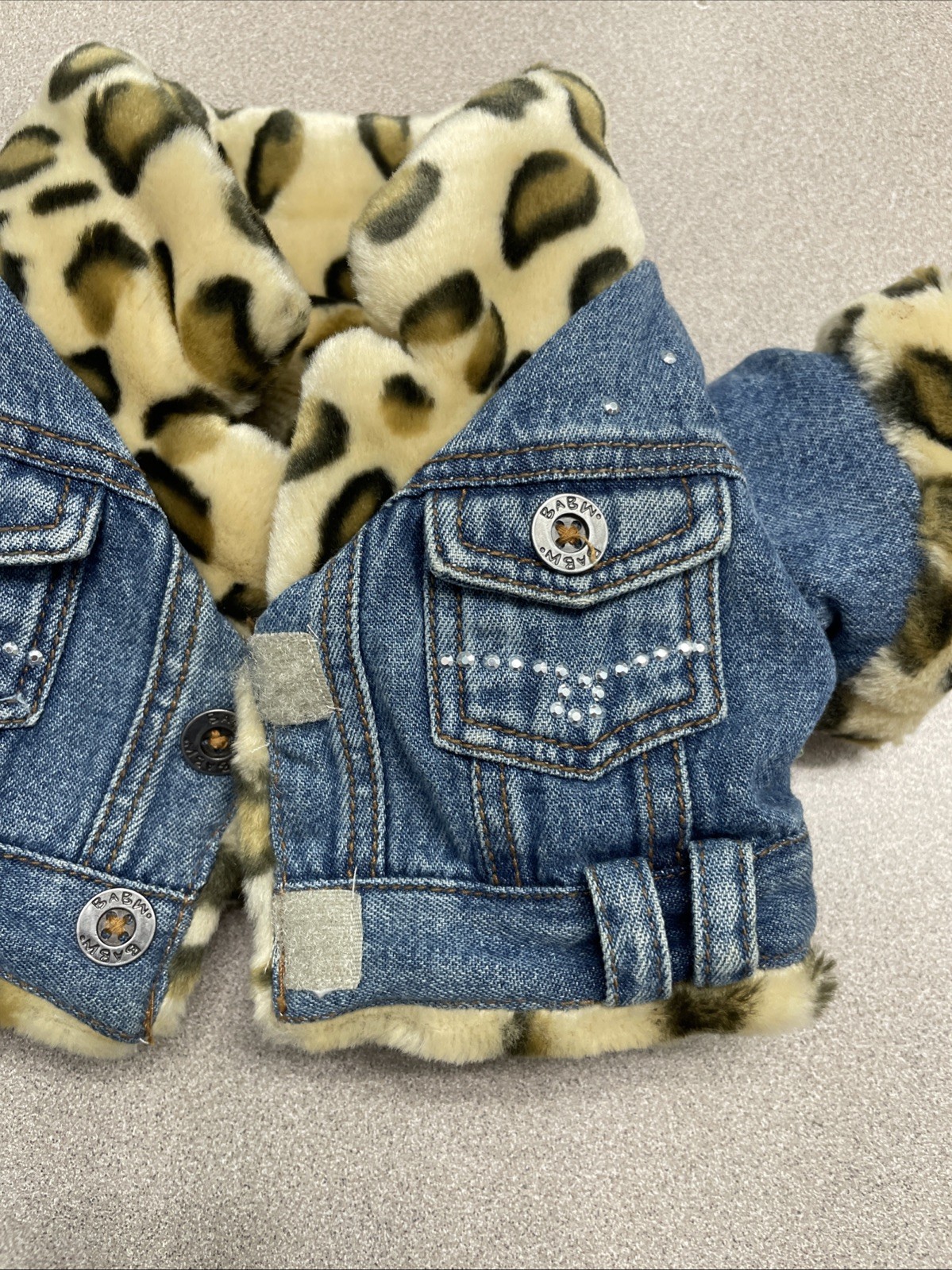 Build A Bear BAB Reversible Jean Denim Jacket Leopard Print Faux Fur Coat