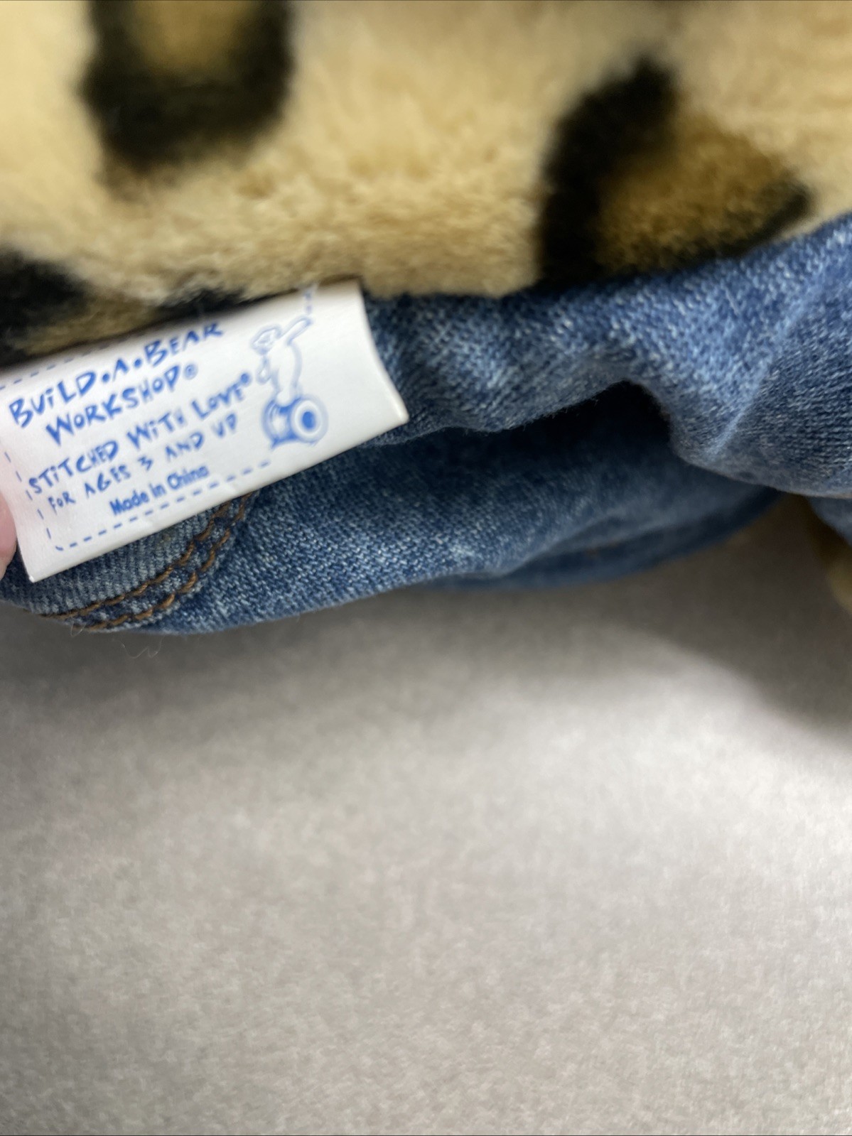 как выглядит Build A Bear BAB Reversible Jean Denim Jacket Leopard Print Faux Fur Coat фото