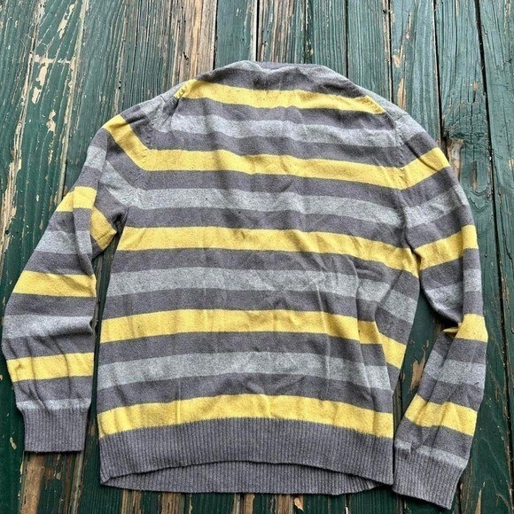 Yellow and grey striped Gap sweater stripes