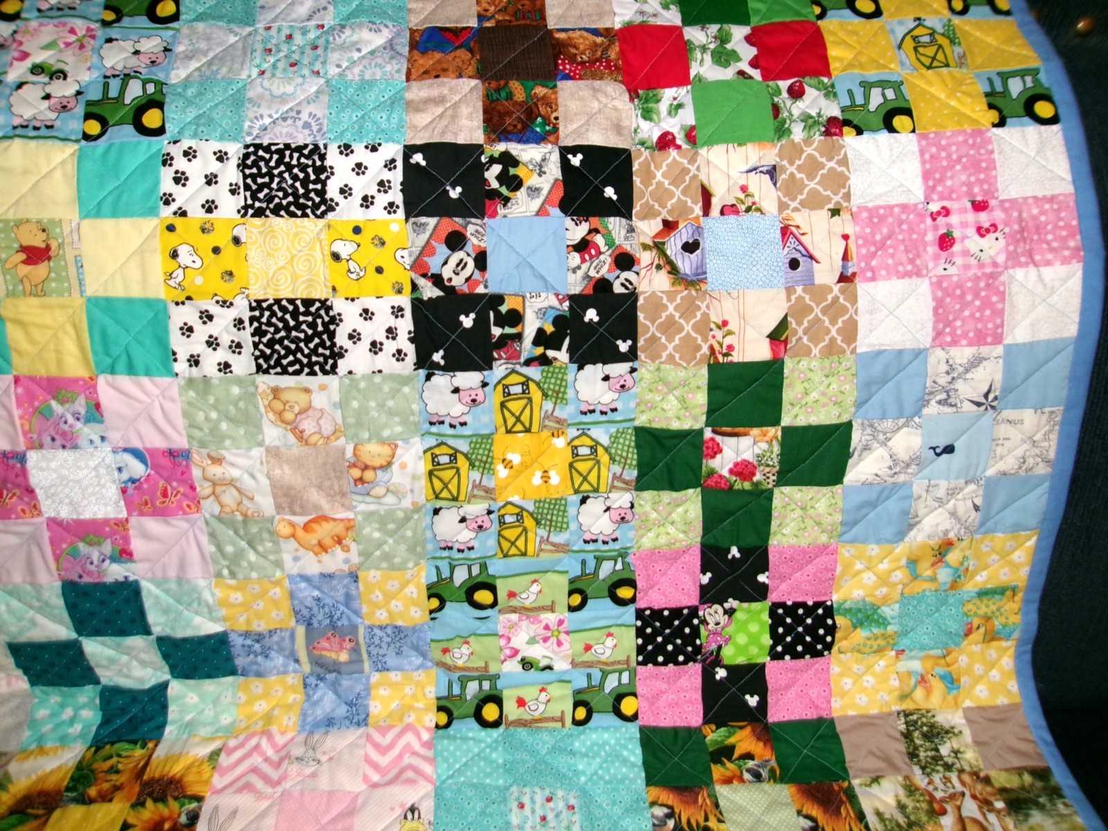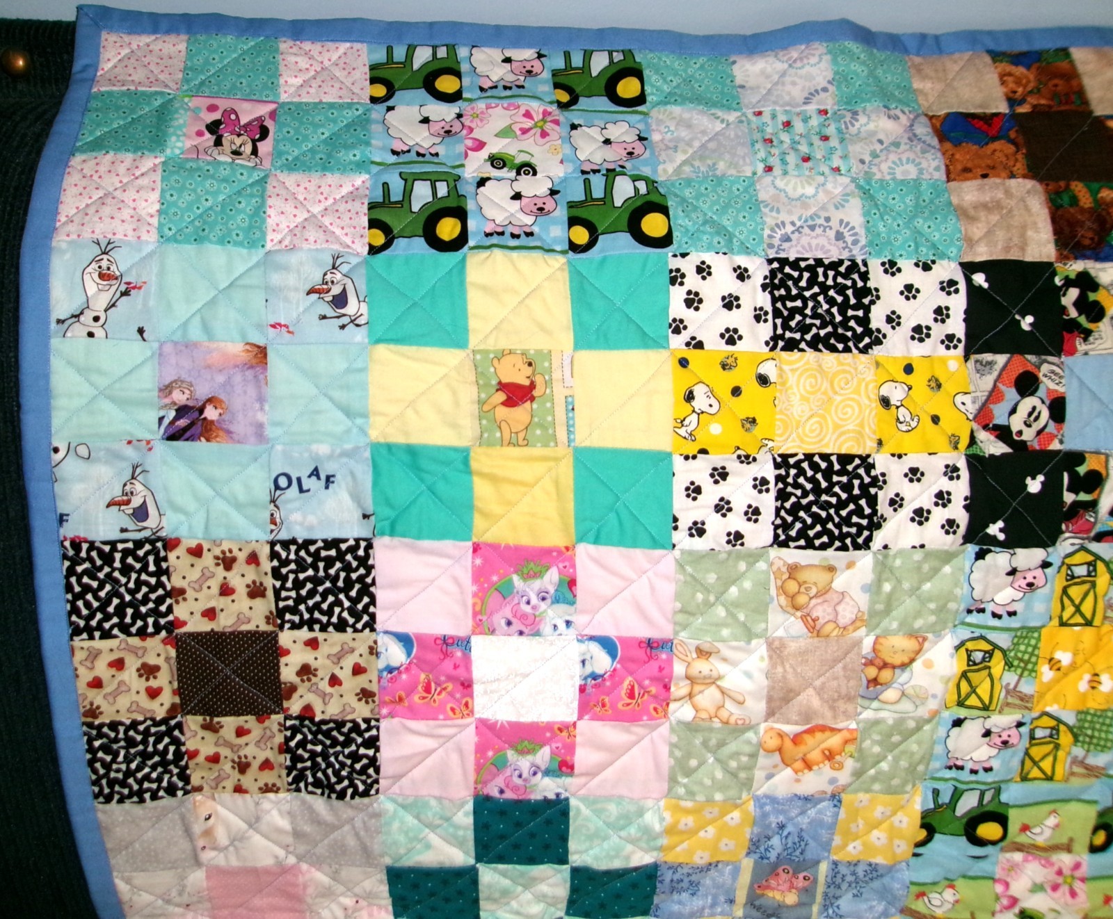 Handmade Patchwork Baby Boy's Crib Quilt, 42 Squares of 9 Pieces, 43 x 49